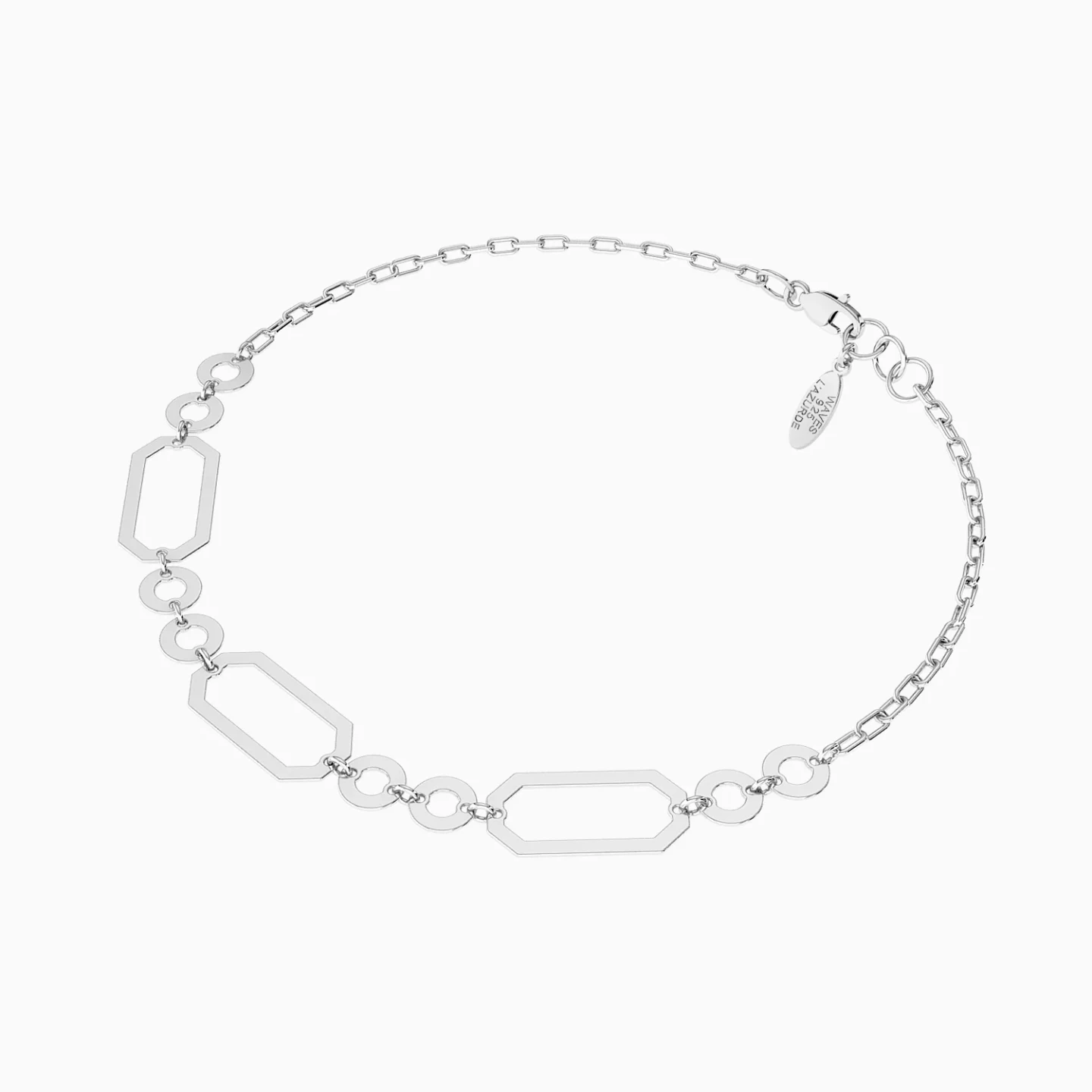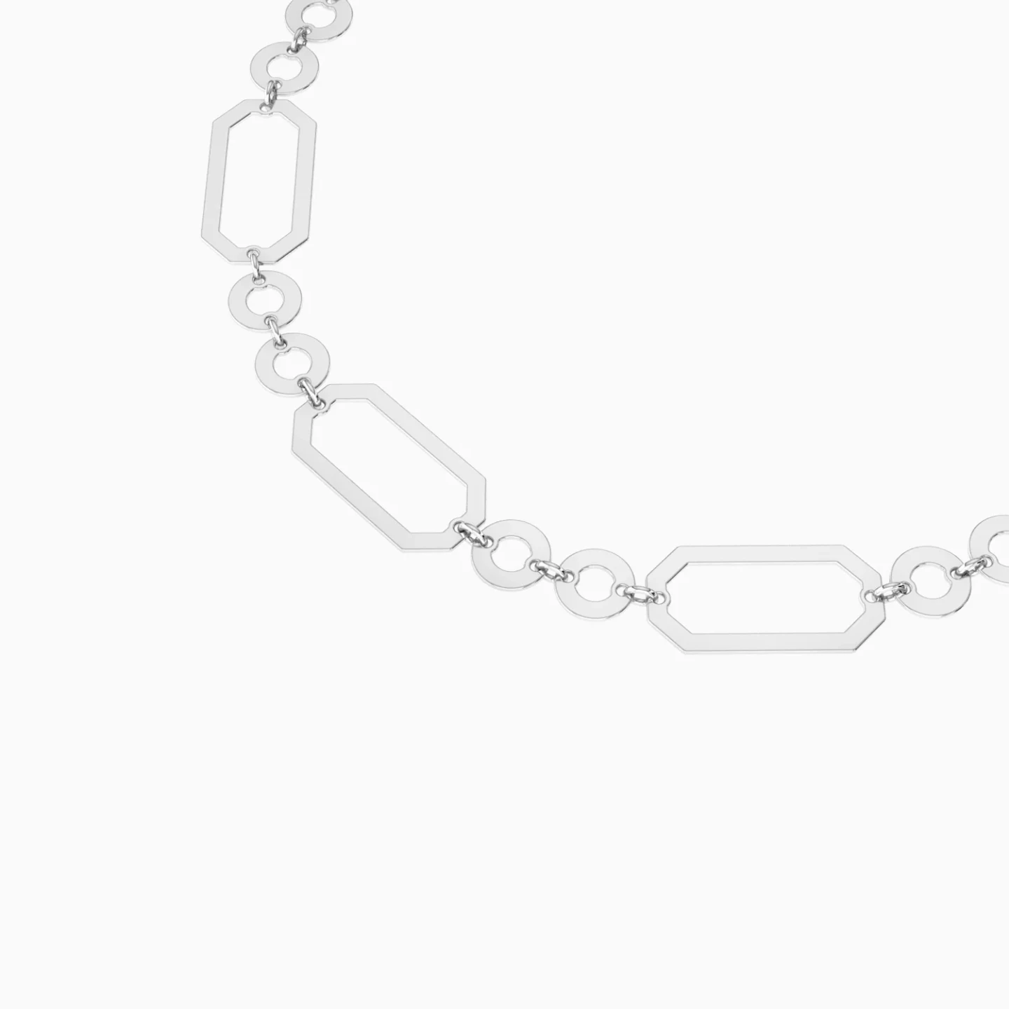 Geometry meets effortless movement. This Waves silver chain bracelet from the Equinox Collection features a delicate chain of rounded links leading to an elongated octagonal frame, creating a sleek silhouette that moves with lightness and rhythm. Modern and expressive, it reflects individuality and confidence—an elegant everyday piece and a thoughtful gift for someone who appreciates clean, contemporary design.