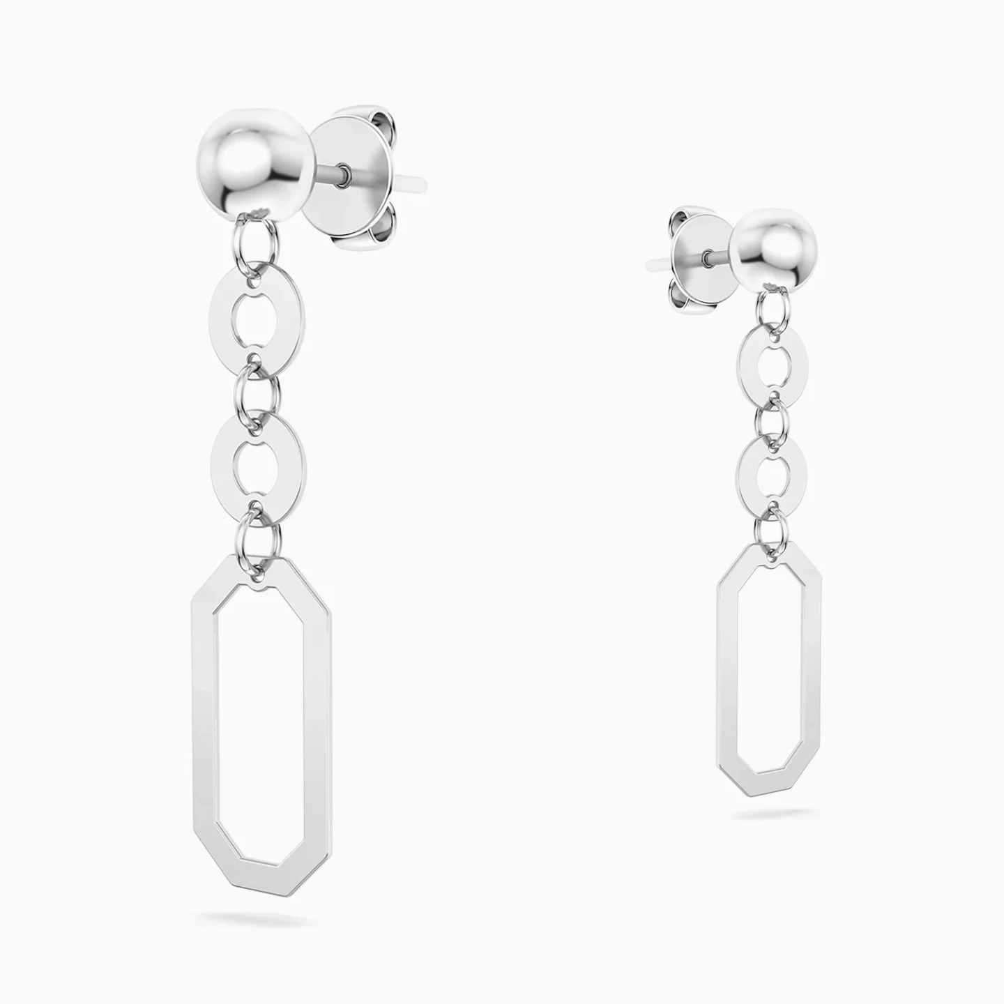 Geometry meets effortless movement. These Waves silver drop earrings from the Equinox Collection feature a delicate chain of rounded links leading to an elongated octagonal frame, creating a sleek silhouette that sways with lightness and rhythm. Modern and expressive, they reflect individuality and confidence—an elegant everyday piece and a thoughtful gift for someone who appreciates clean, contemporary design.