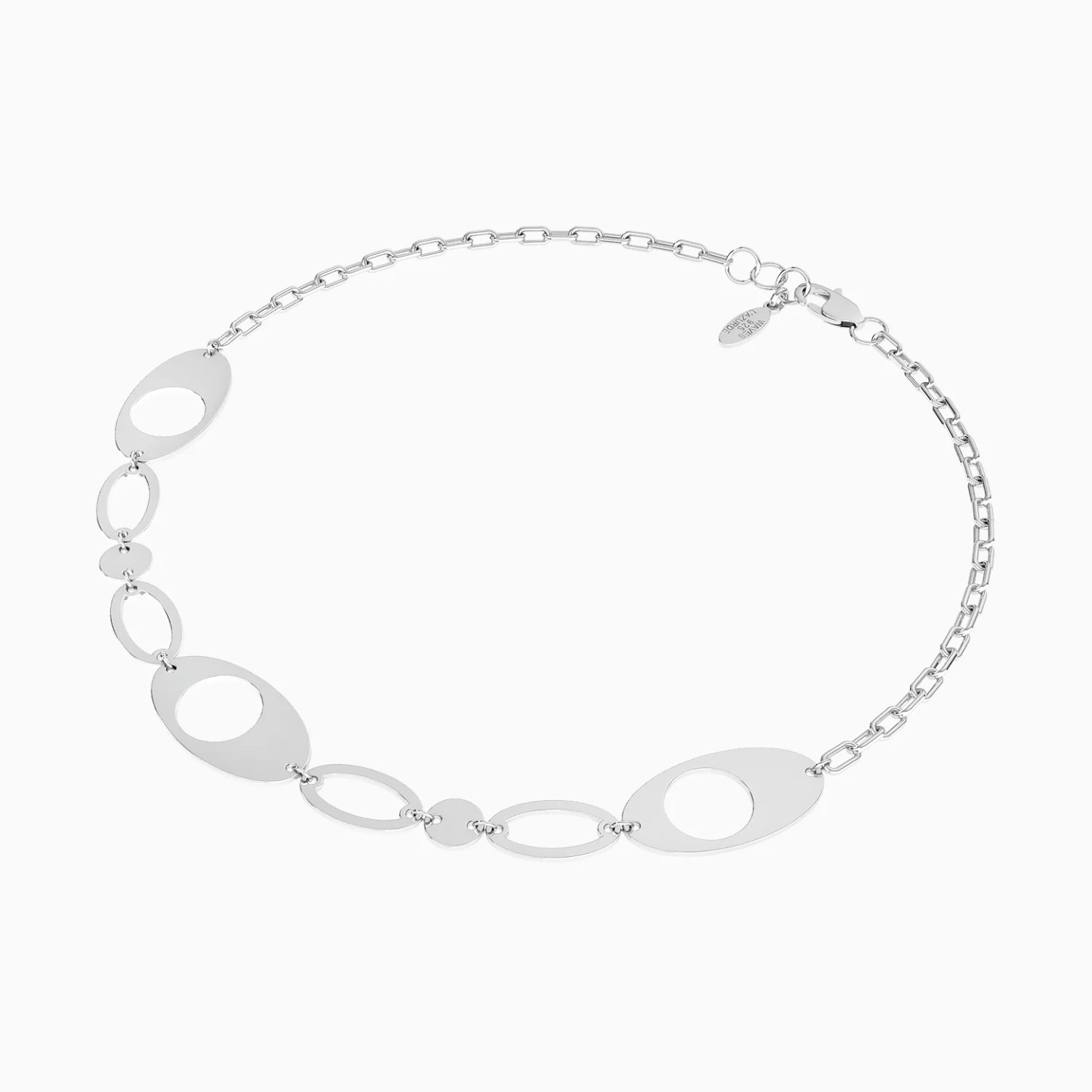 سلسلة شكل حلقات تجريدية وبيضاوية فضة
