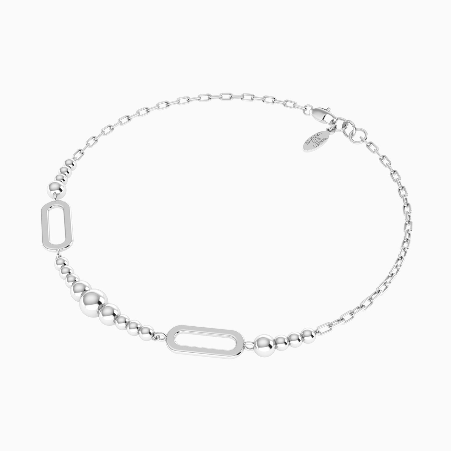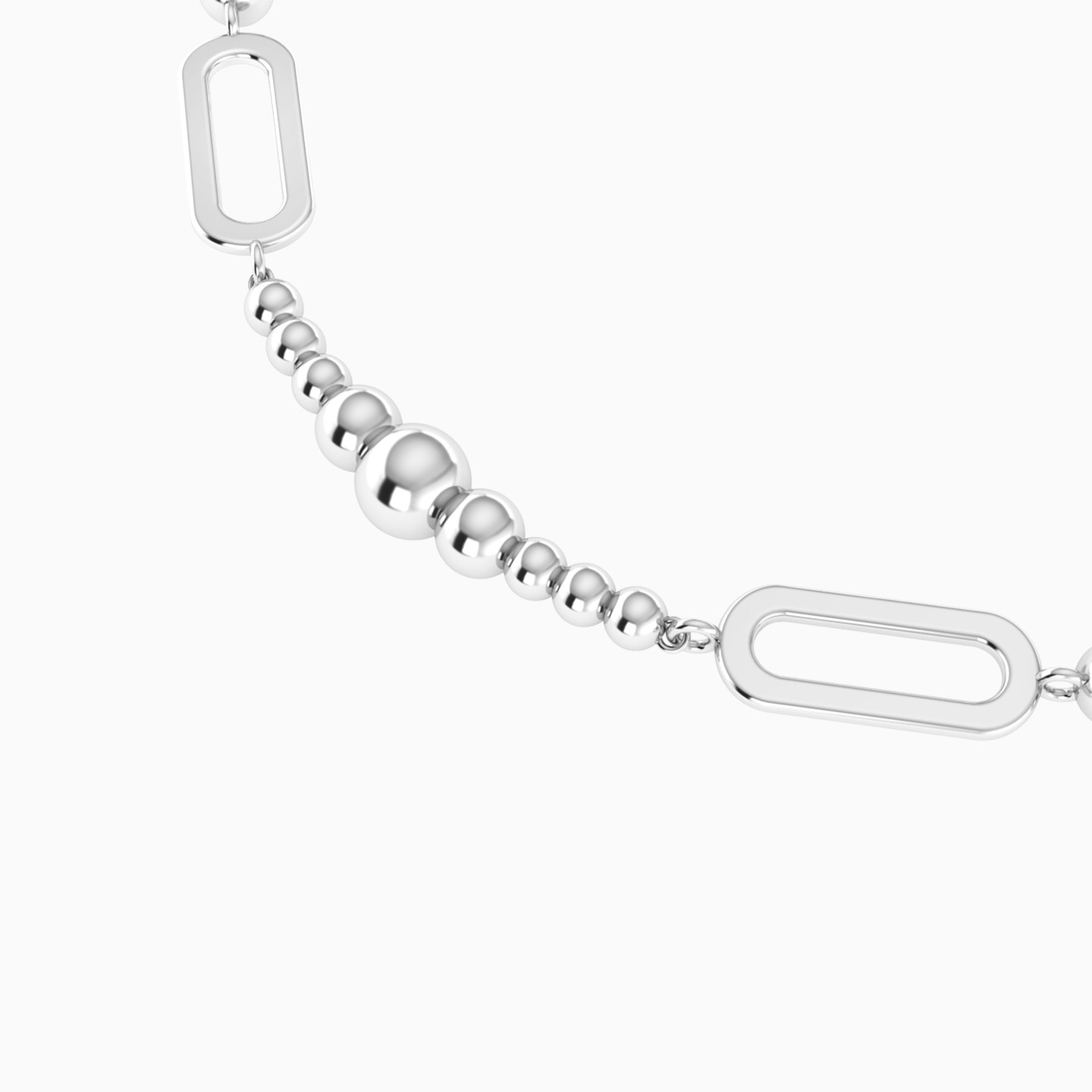 A composed rhythm runs through this Waves chain bracelet, where polished beads gather around sleek paperclip accents for a balanced, modern flow. The contrast between rounded softness and clean lines creates a design that feels thoughtful and quietly expressive. Designed to move naturally with the wrist, it brings structure without heaviness. A thoughtful gift that reflects harmony, confidence, and everyday elegance.