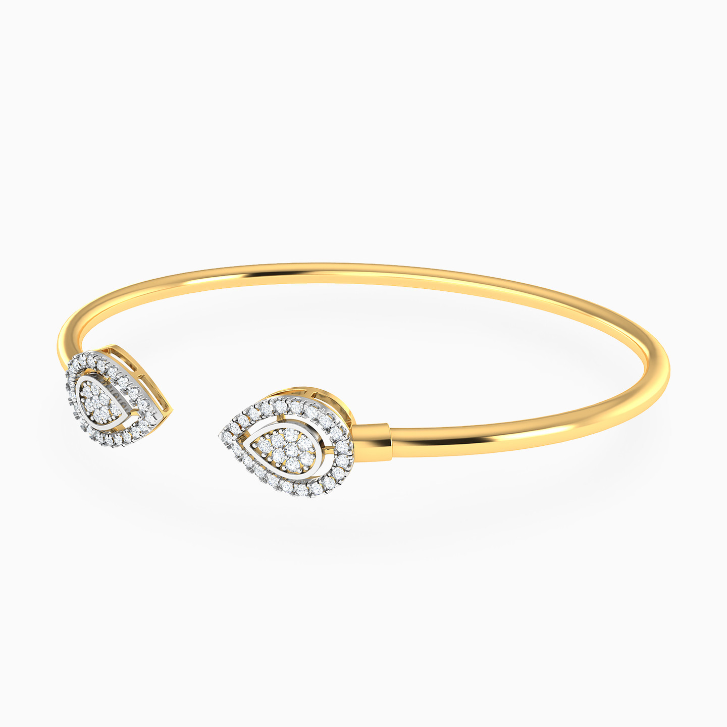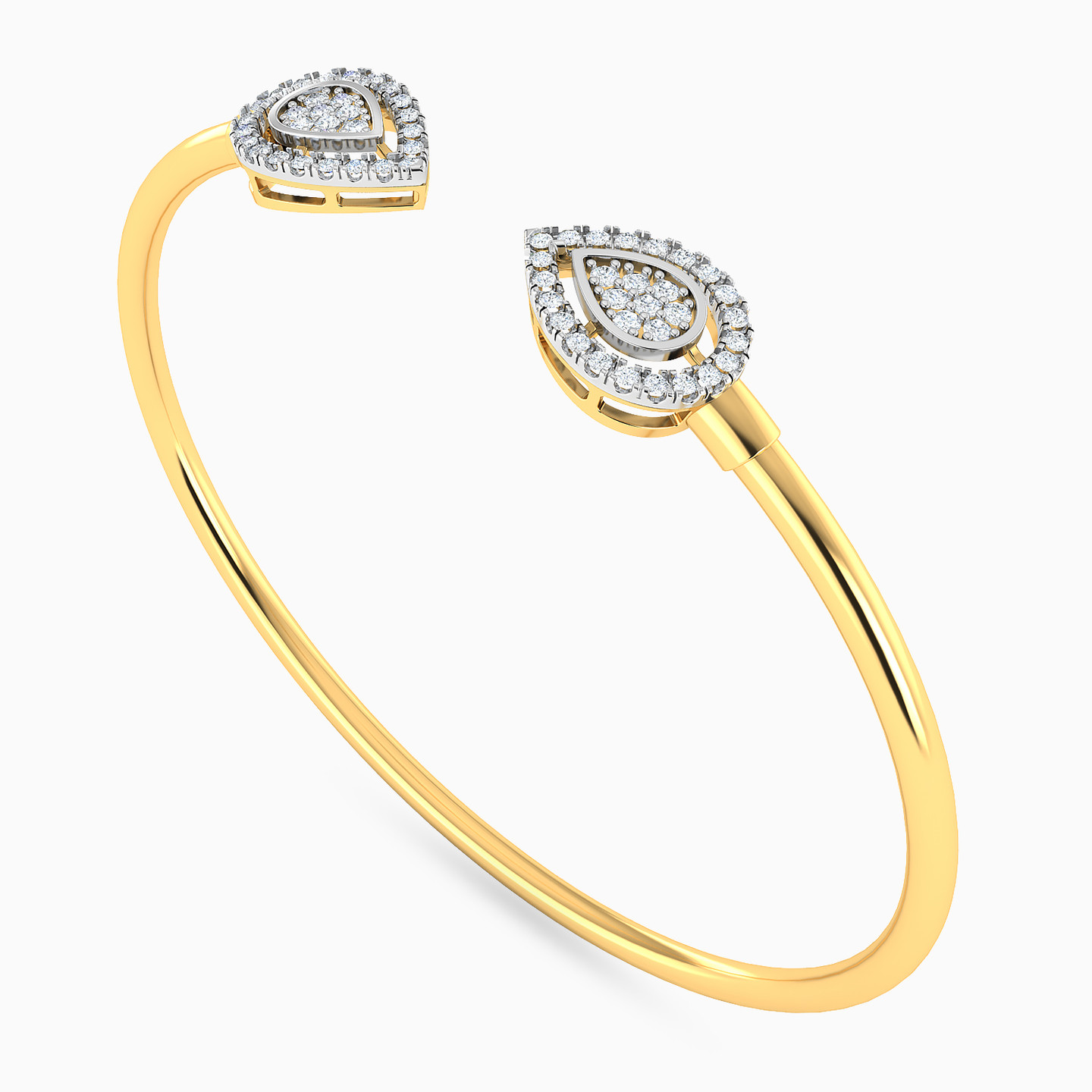 Dazzle them with eye-catching sparkle and sweet sophistication by wearing this beautiful cuff bracelet from L'azurde Gold. Guaranteed to appeal to your love of graceful feminine accessories, this 18-karat yellow gold bracelet shines with pear-shaped cubic zirconia motifs that are chic and simple. For understated luxury that shimmers with your every move, this everyday bracelet is the right choice.