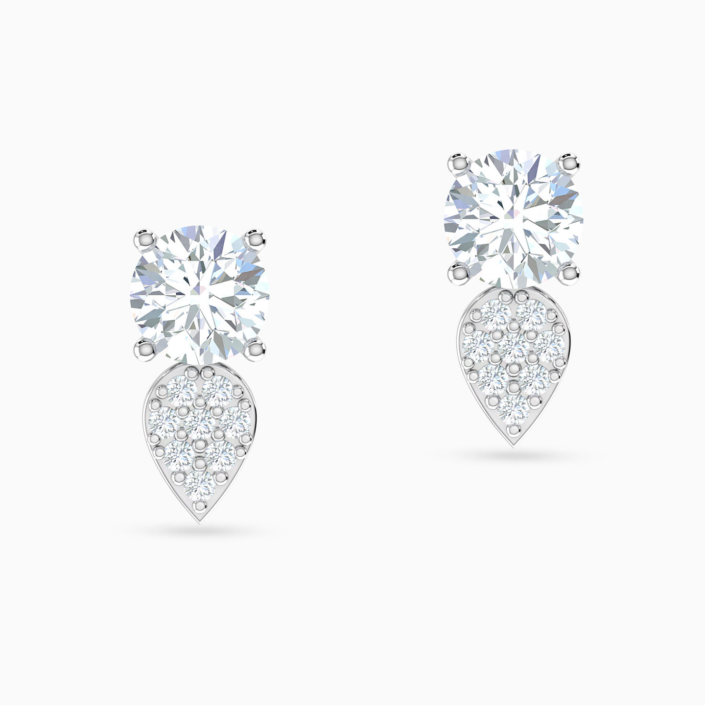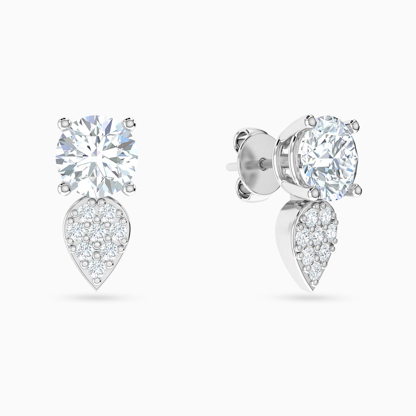 These studs by L’azurde Gold are designed to make you shine like a diva! The most dazzling and brilliant round-shaped cubic zirconia is set beautifully on four prongs and completed with a lovely cubic zirconia studded pear-shaped drop. All of this comes in an 18-karat white gold body which makes these studs look breathtakingly beautiful.