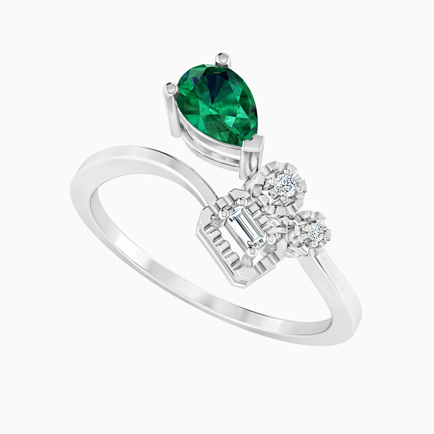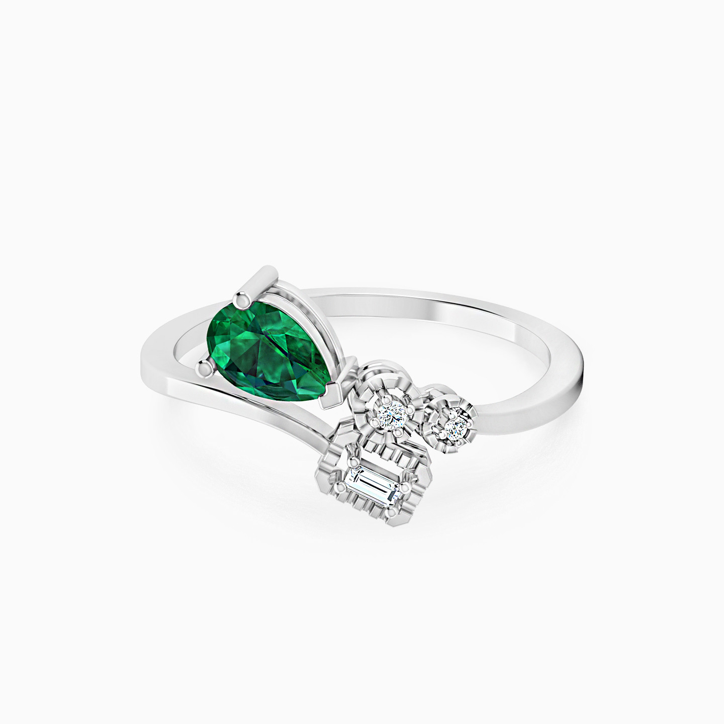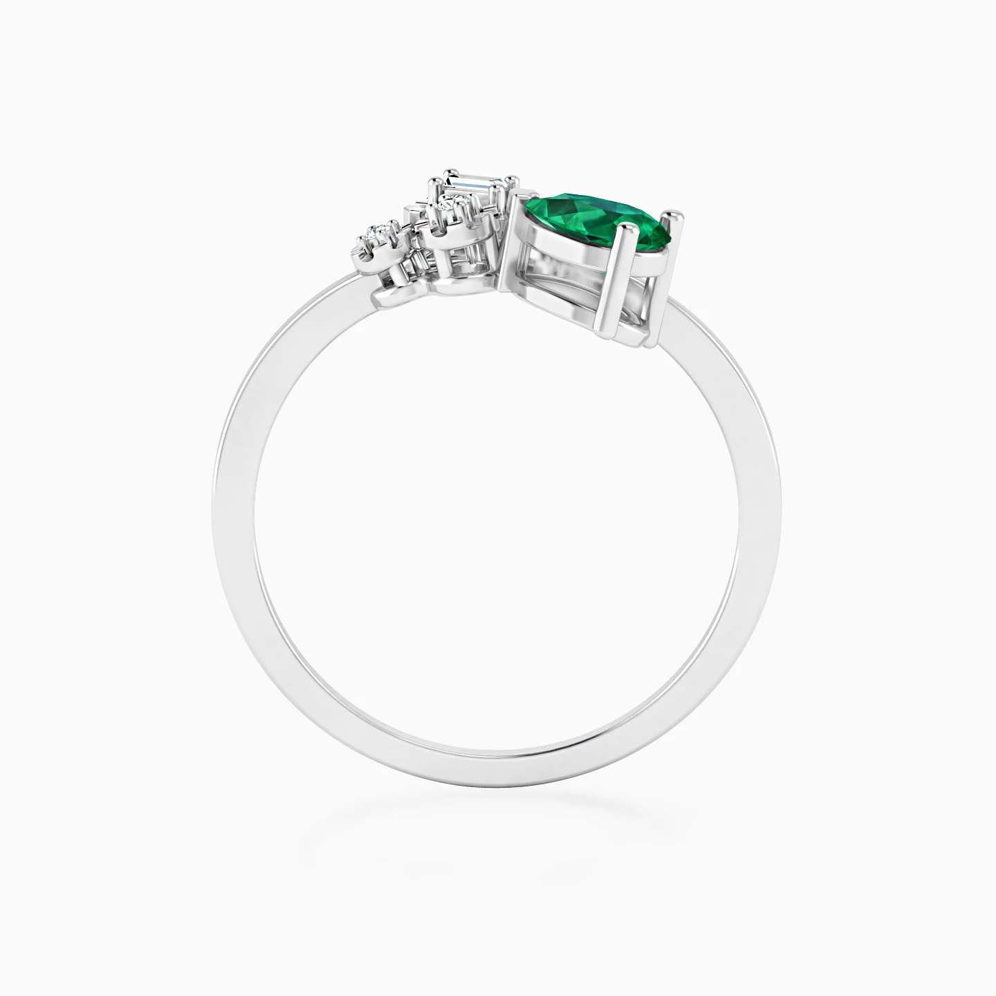 خاتم ذهب كمثرى عيار 18 قيراط مزين بالألماس وحجر أخضر