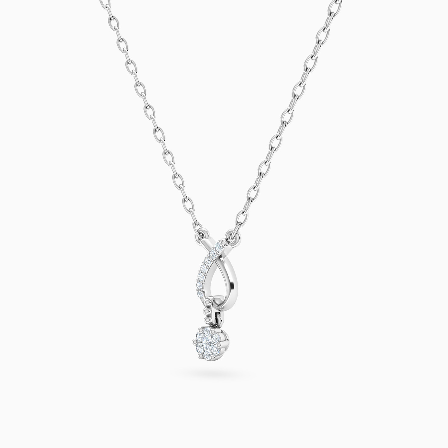 Keep it simple and elegant at the next party with this beautiful pendant necklace by L'azurde Diamonds. Made from lustrous 18-karat white gold, it features a sleek loop studded with diamonds on one side suspending a dazzling flower made of 0.06-carat brilliant cut diamonds. Style it with a formal dress for a workday or a bodycon dress or crop top for a party-read look.