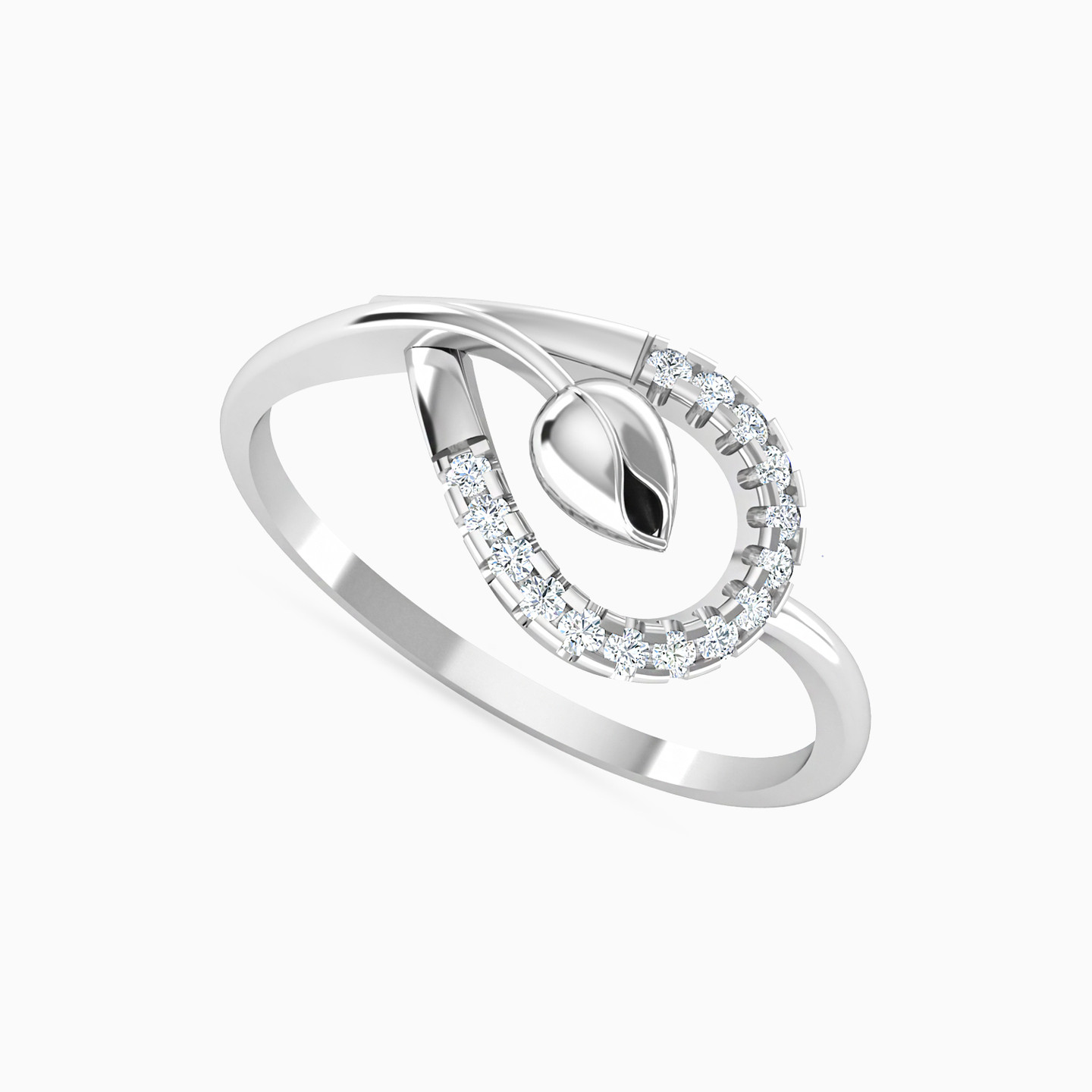 This stunning statement ring by L'azurde Diamonds is our attempt to capture the ethereal beauty of those unfolding flower buds in a wild garden! Crafted from 18-karat white gold, this ring features a sleek band with an exquisitely crafted flower bud on one head that sits cradled within a pear-shaped frame lined with the most sparkling brilliant cut diamonds in a castle setting. The delicate beauty of a bud combined with the sparkle of diamonds creates a mesmerizing dance of poetic elegance and luxury, making this ring a showstopper piece.