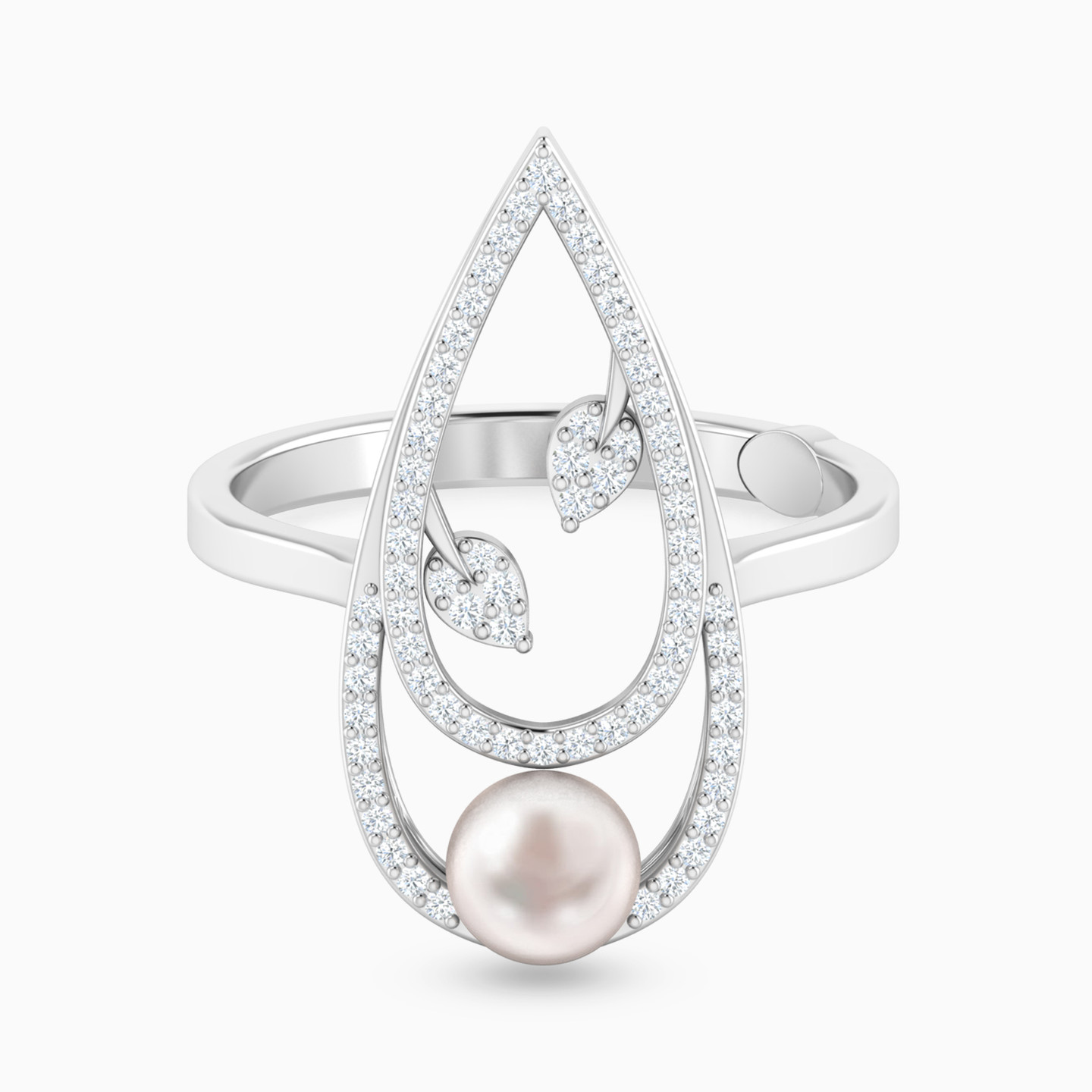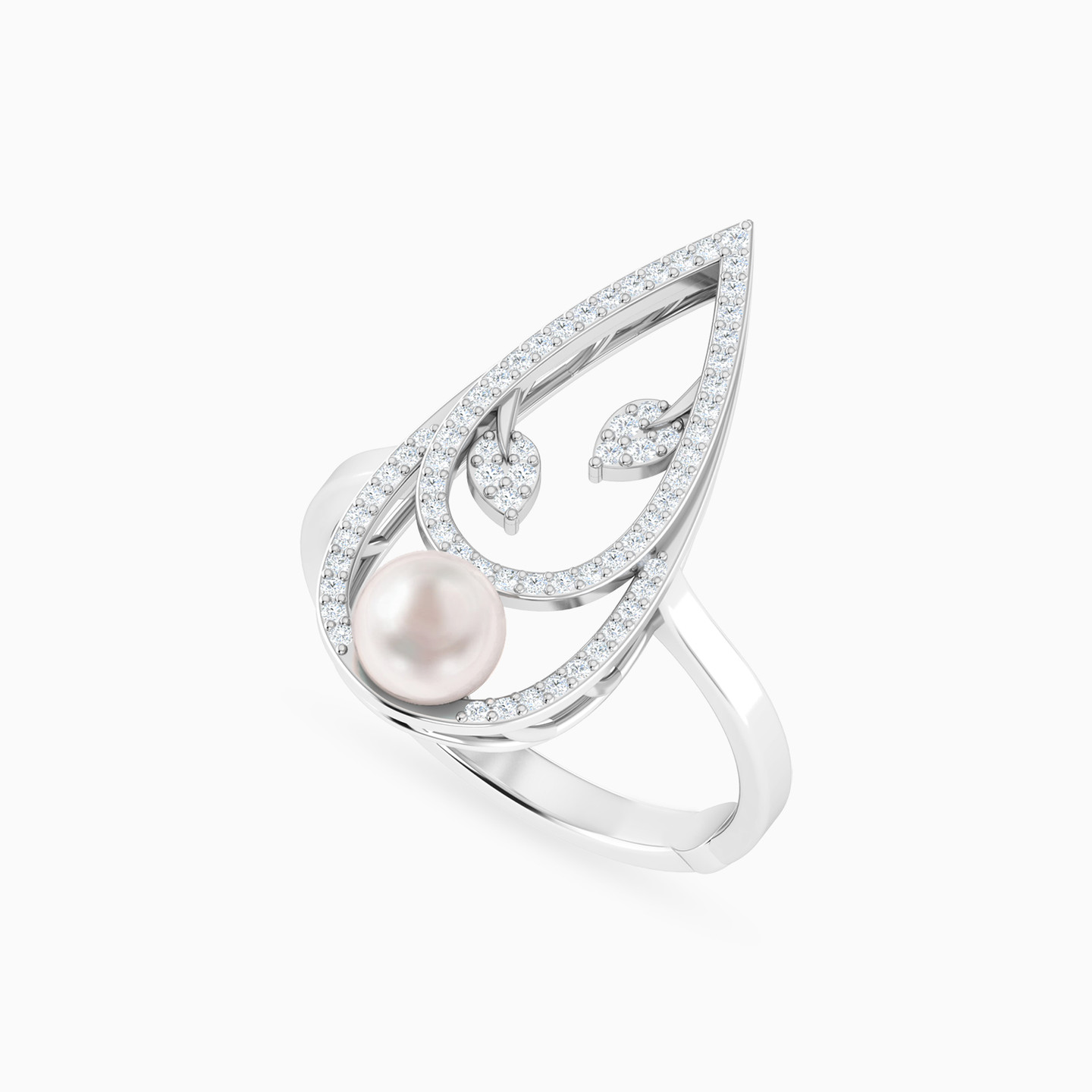 خاتم ذهب شكل قطرة عيار 18 قيراط مزين بالألماس واللؤلؤ