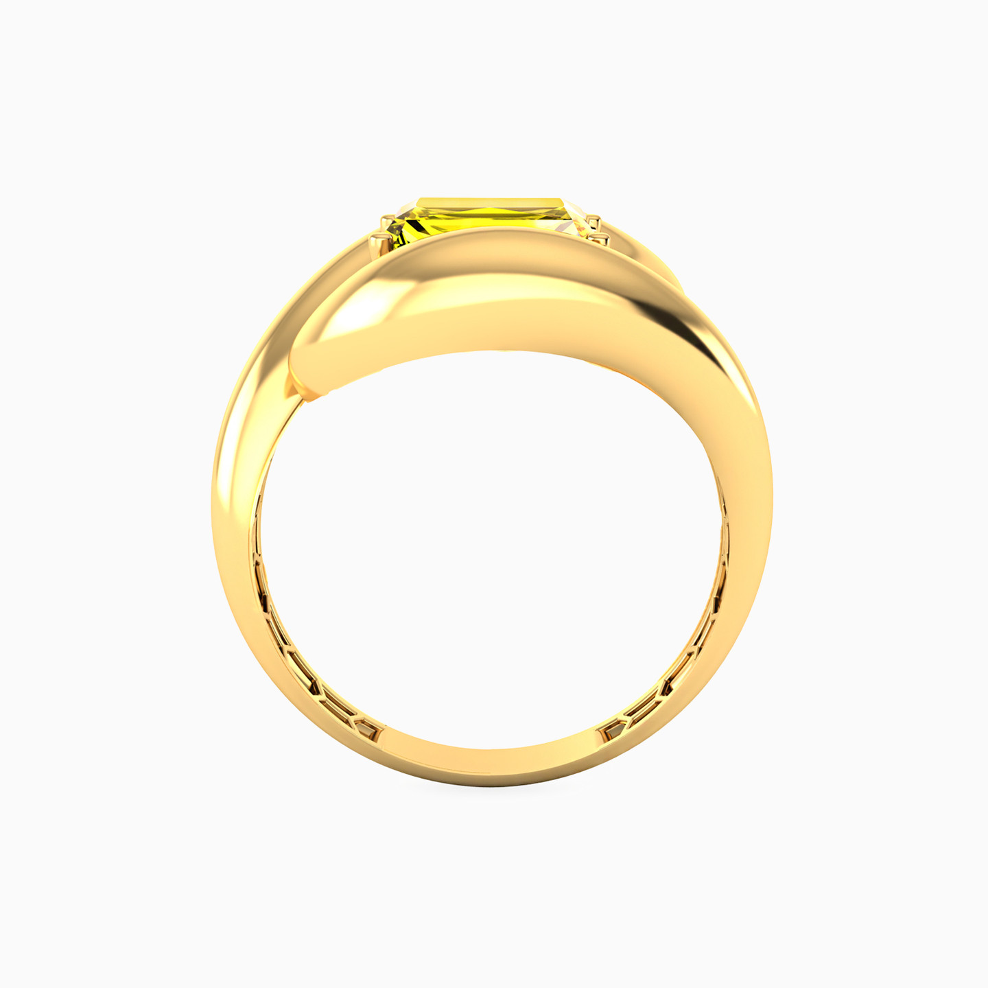 خاتم ذهب مستطيل عيار 18 قيراط مزين بحجر أصفر
