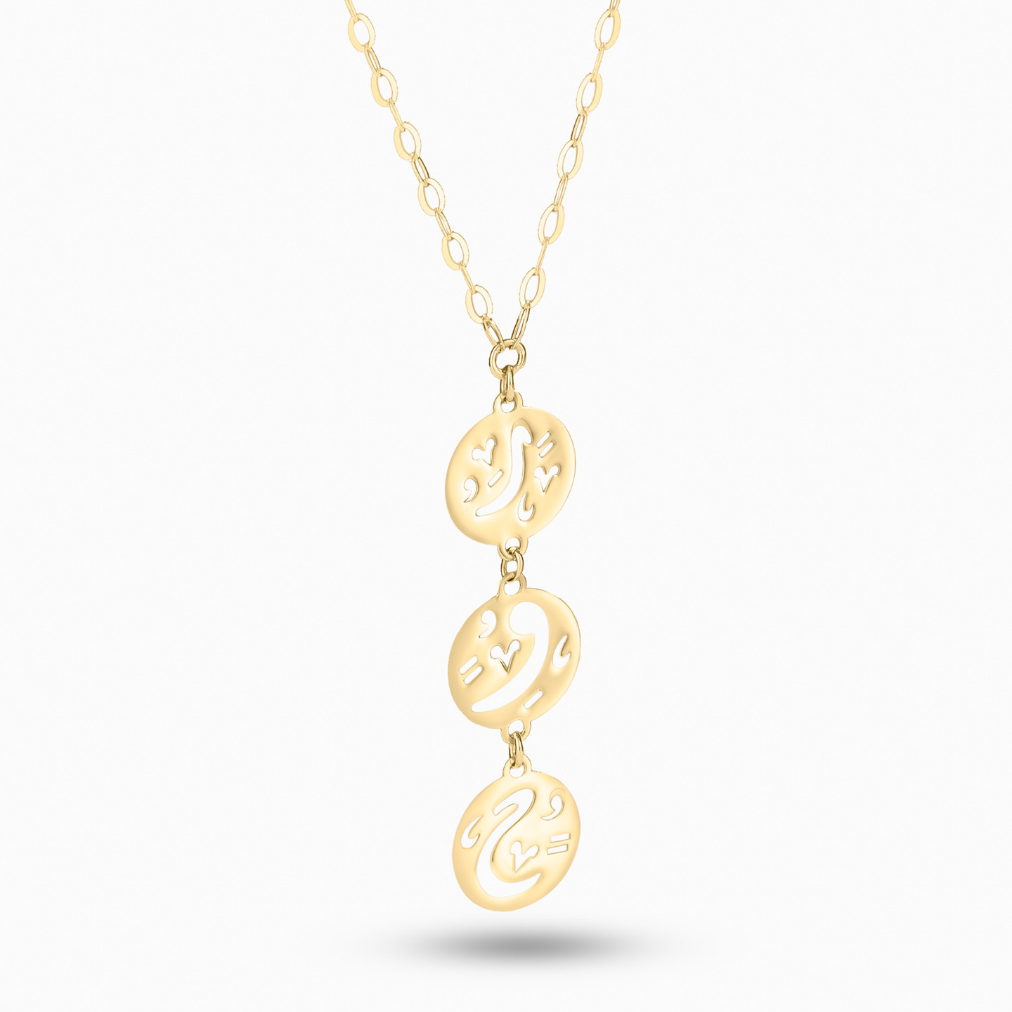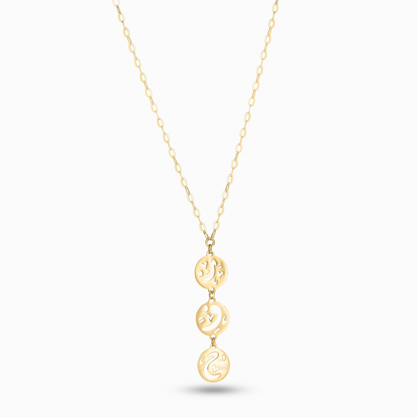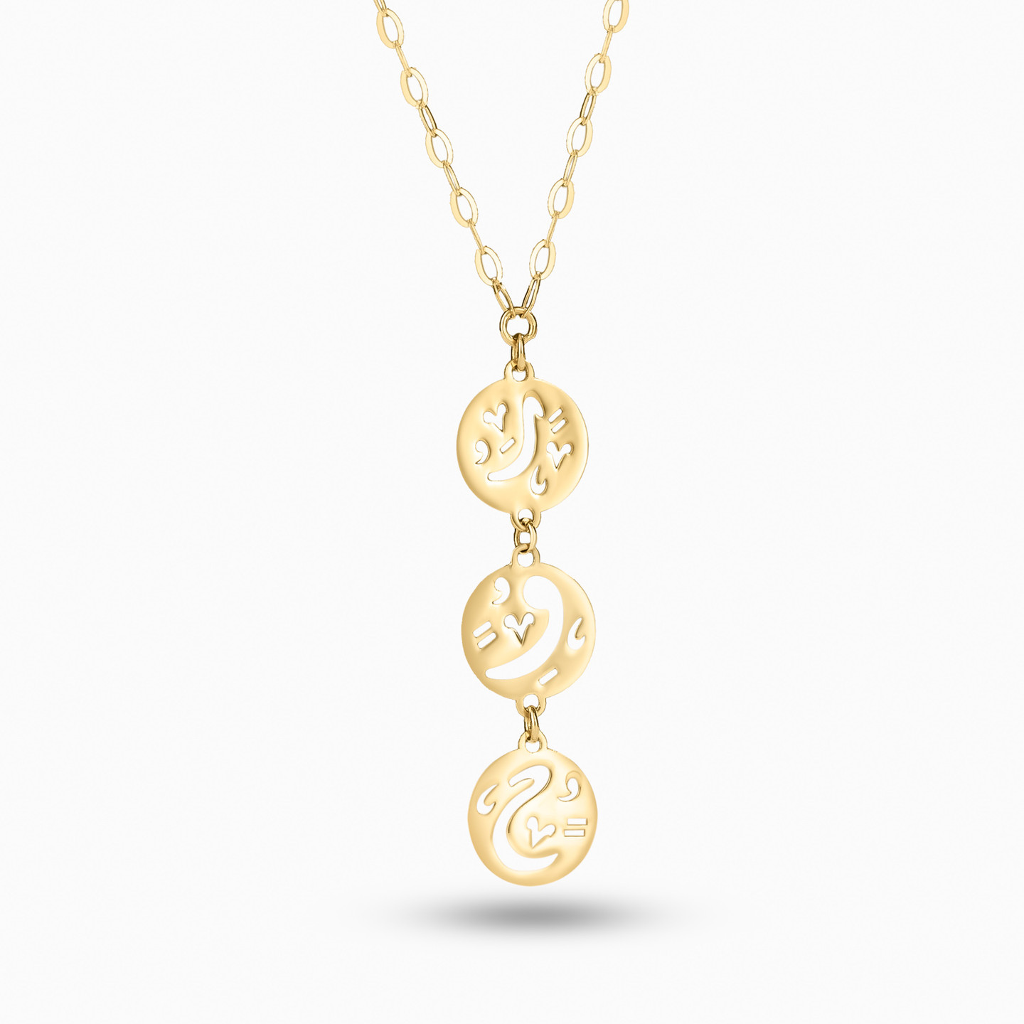Enjoy life in the present moment; mind, body and soul by wearing this necklace from Miss L'. This enchanting necklace showcases the word "soul" in openwork details on round discs. Crafted in 18-karat yellow gold, this captivating piece is the perfect complement to your casual weekend looks or dressy dinner date attire.