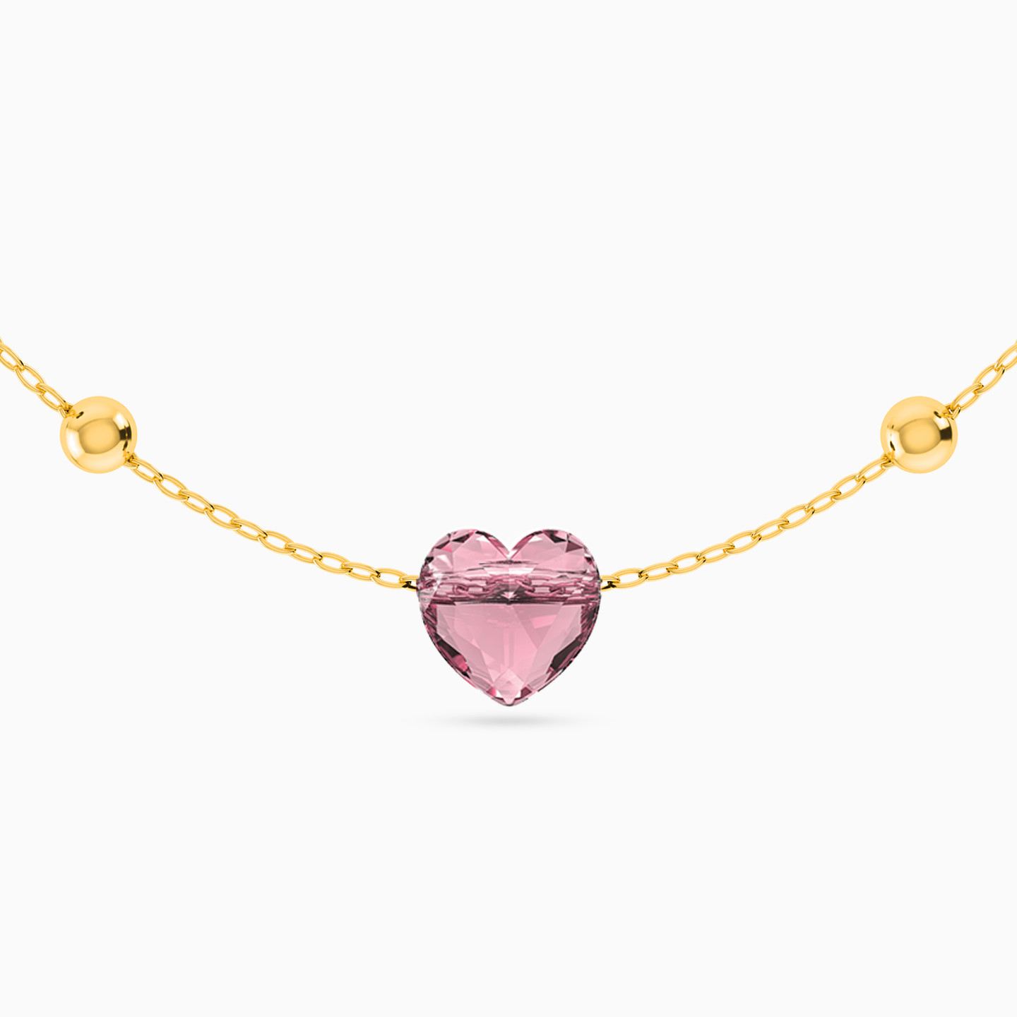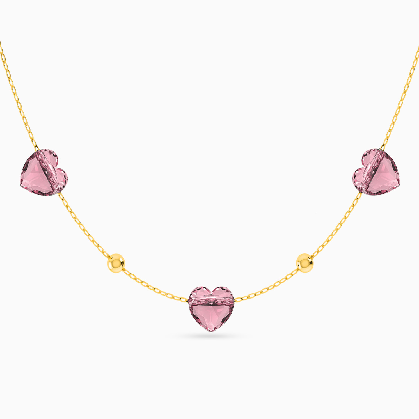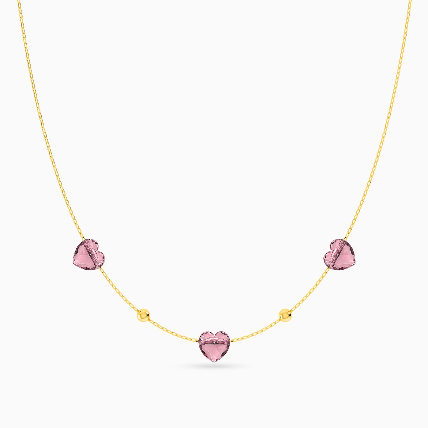 This feminine piece from L’azurde Instyle will bring a natural blush to your look. The lilac hued heart stones catch light from all angles to lend a glow to your appearance while the yellow gold chain they are lined up on, sits gracefully on your neckline. This piece makes a fitting choice for a date night, but you can choose to wear it every day too.