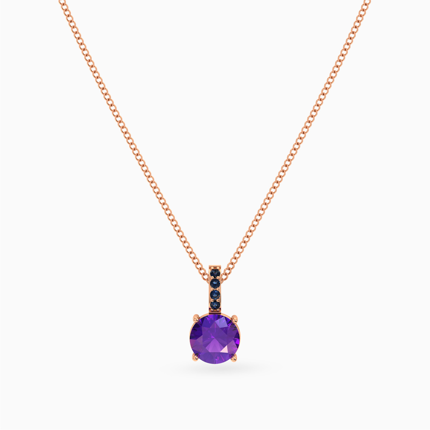 Discover affordable glamour and timeless style with this piece from Waves! From the Mauve Collection, this rose gold plated necklace features a fine, feminine chain adorned with a round purple stone pendant, delicately accented by tiny blue stones along the bail. The subtle contrast between rich hues and warm tones makes it a graceful piece for layering or adding a soft pop of color to your everyday elegance.