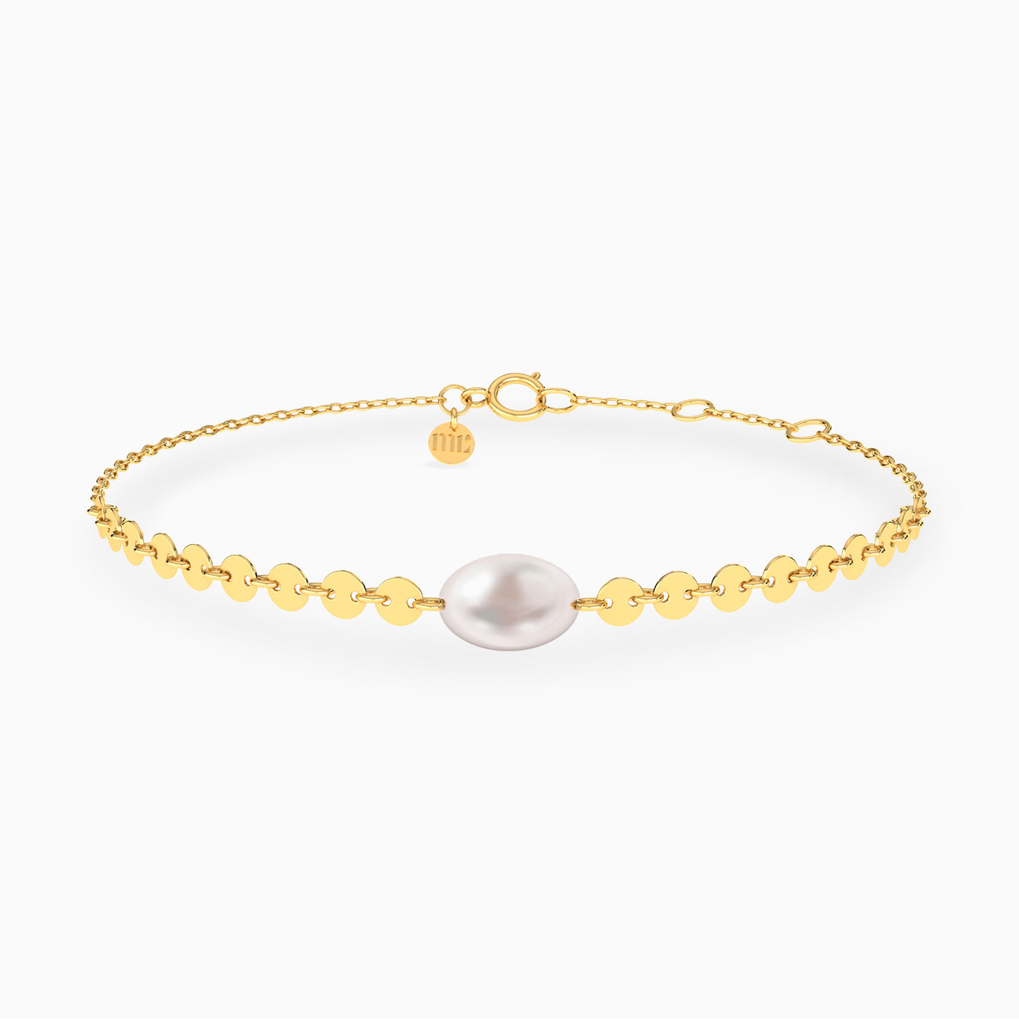 أسورة بسلسلة شكل أقراص دائرية ذهب عيار 14 قيراط مزينة بلؤلؤة