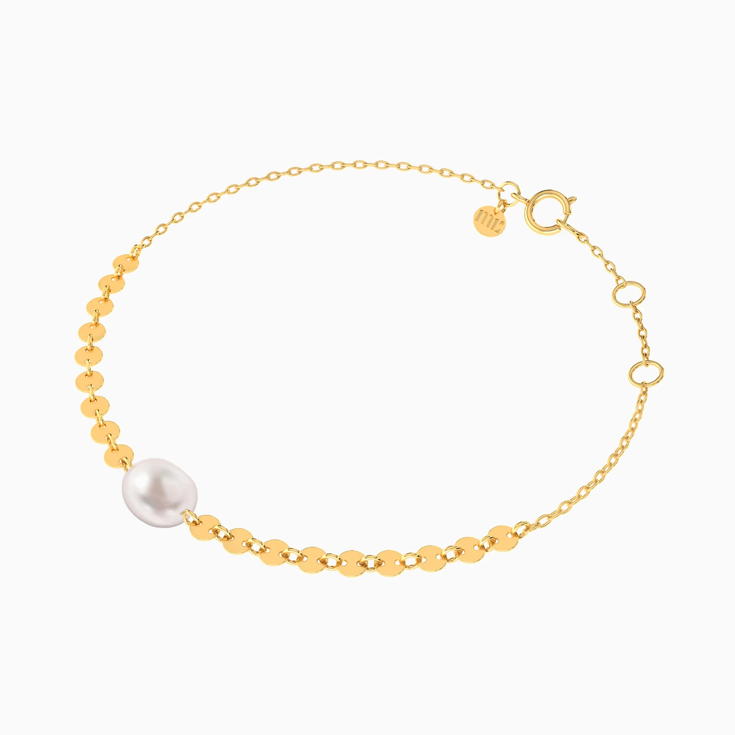 Beauty often hides in the smallest moments. This Miss L’ Enchanted chain bracelet features a playful sequence of golden discs brought to life by a single luminous pearl at the center—an effortless blend of charm and softness. A lovely gift for someone who appreciates subtle sparkle and meaningful simplicity.