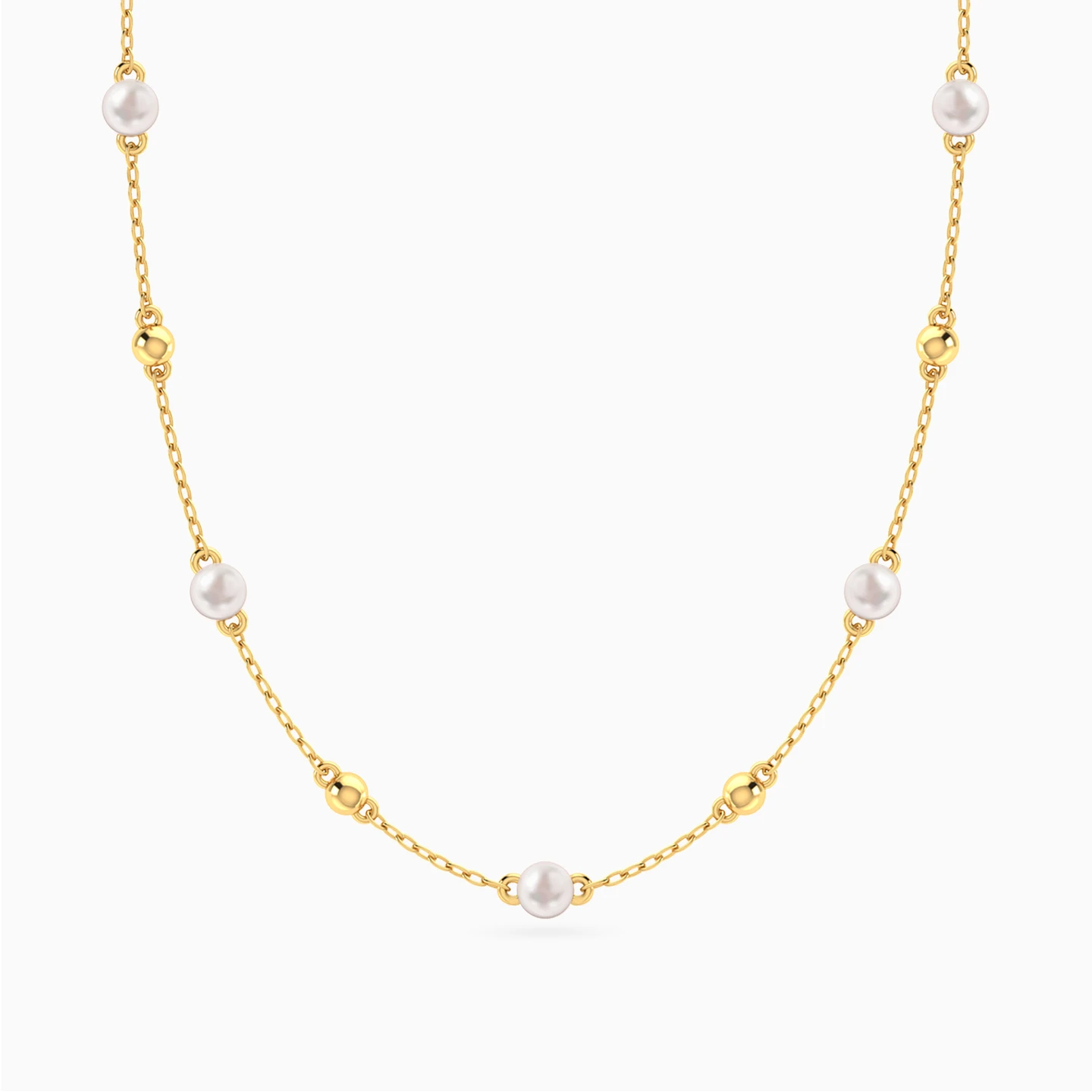 Sometimes all you need is something delicate and subtle to bring together an ensemble. This chain necklace from Miss L' is here to help you do just that. Crafted from the finest 14-karat yellow gold, this necklace features a delicate chain with alternating yellow gold beads and round-shaped pearls set by loops on either side and dancing along the length of the chain. This understated luxury is sure to become your new favorite for every occasion.