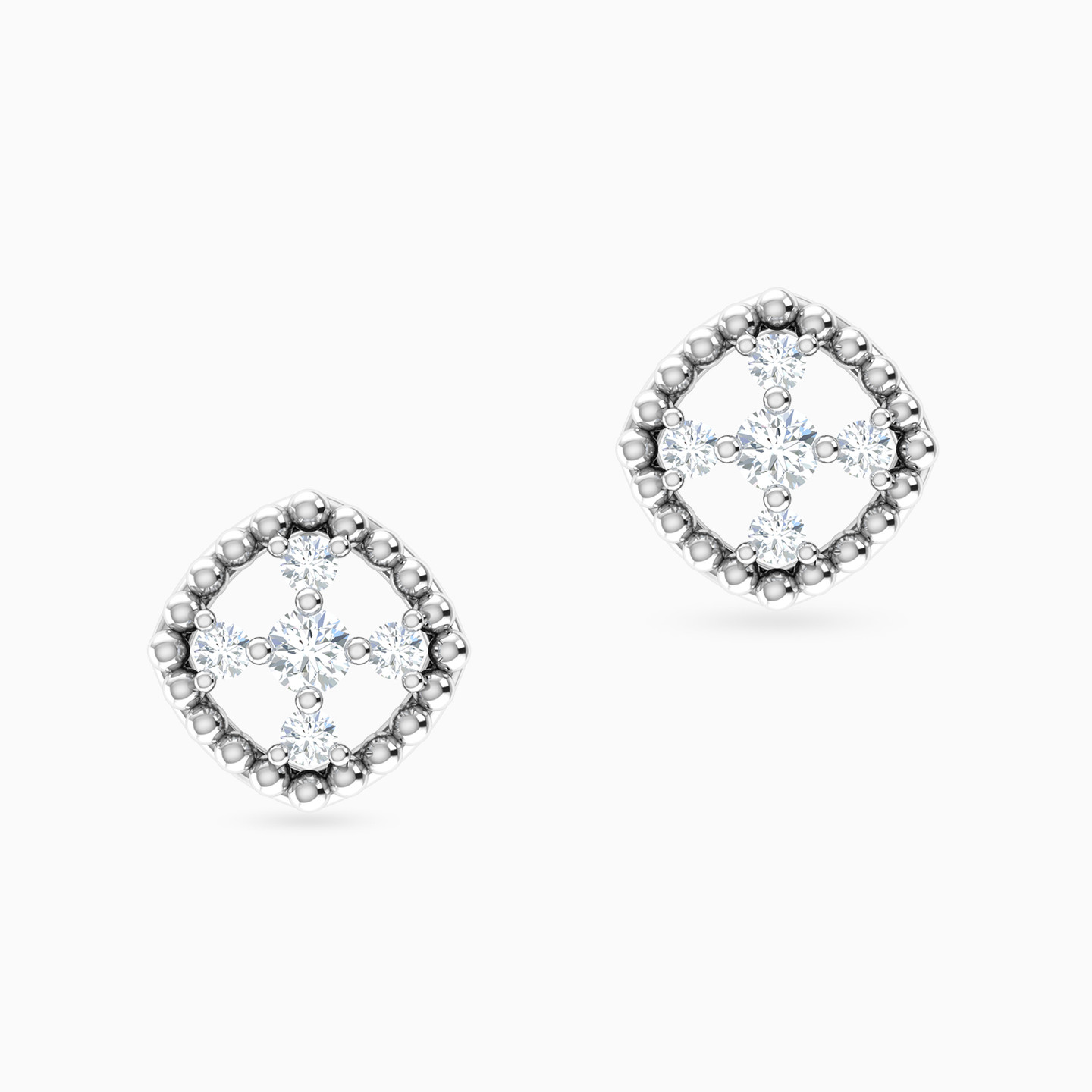 A harmony of detail and light. These Lazurde Diamonds stud earrings feature a rounded square silhouette with brilliant-cut diamonds set in a delicate cross pattern, framed by polished beaded edges. Refined and radiant, they offer a graceful touch for everyday elegance or meaningful gifting.