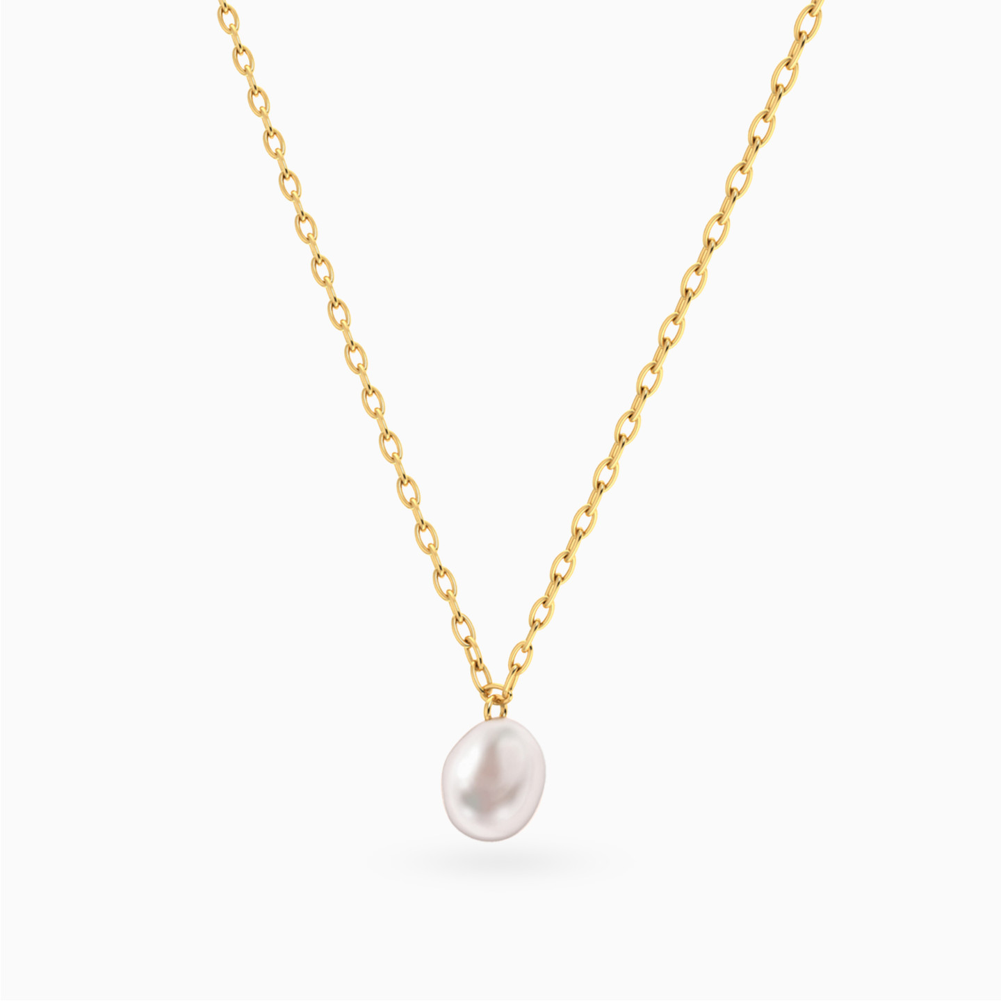 سلسلة رقيقة ذهب عيار 14 قيراط مزينة بلؤلؤة