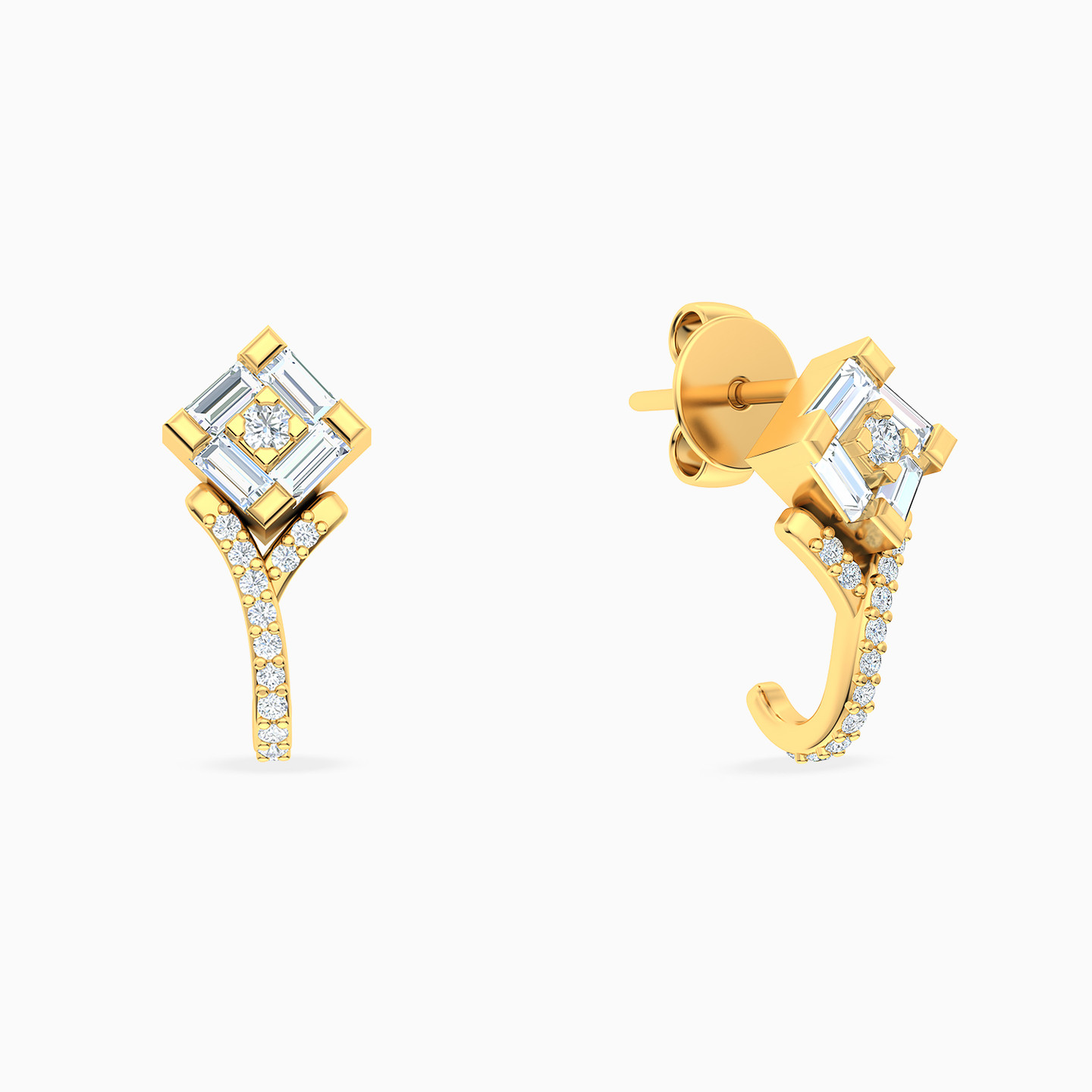 اقراط صغيرة شكل مربع وانحناء ذهب عيار 18 قيراط مزينة بالألماس