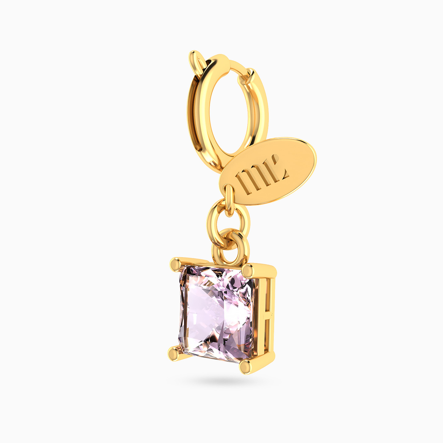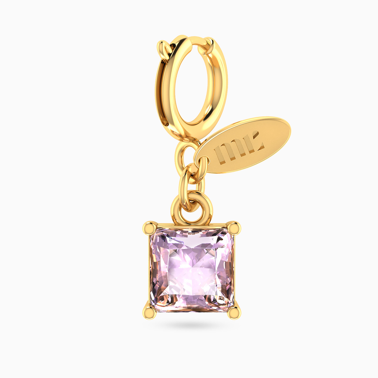Light in every angle. This refined Miss L’ charm features a square-cut lavender stone set in a golden frame, capturing the elegance of simplicity and the quiet beauty of soft sparkle. Add it to your favorite bracelet or necklace for a graceful glow that brightens every look.