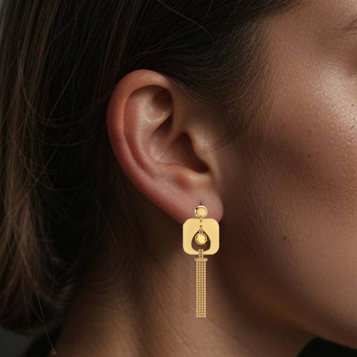 أقراط متدلية ذهب مربعة عيار 18 قيراط مزينة بحجر أصفر