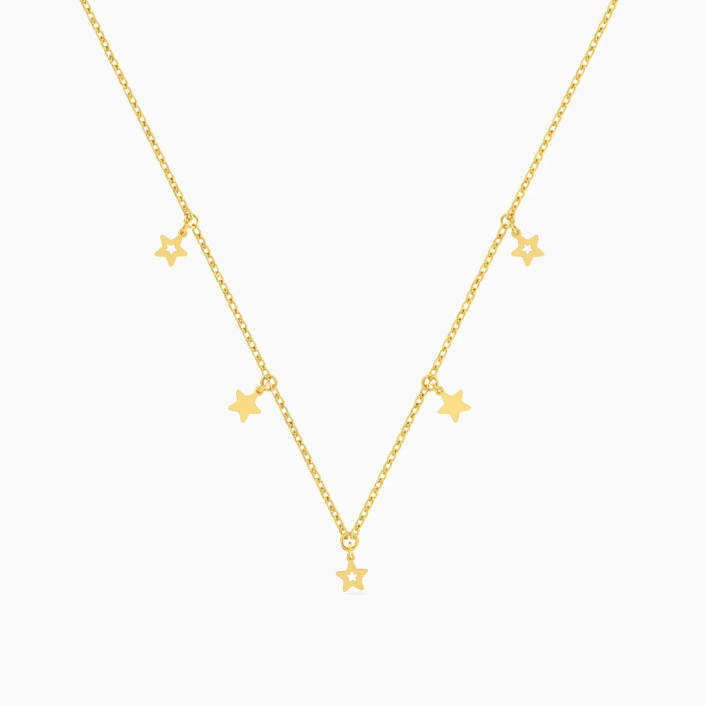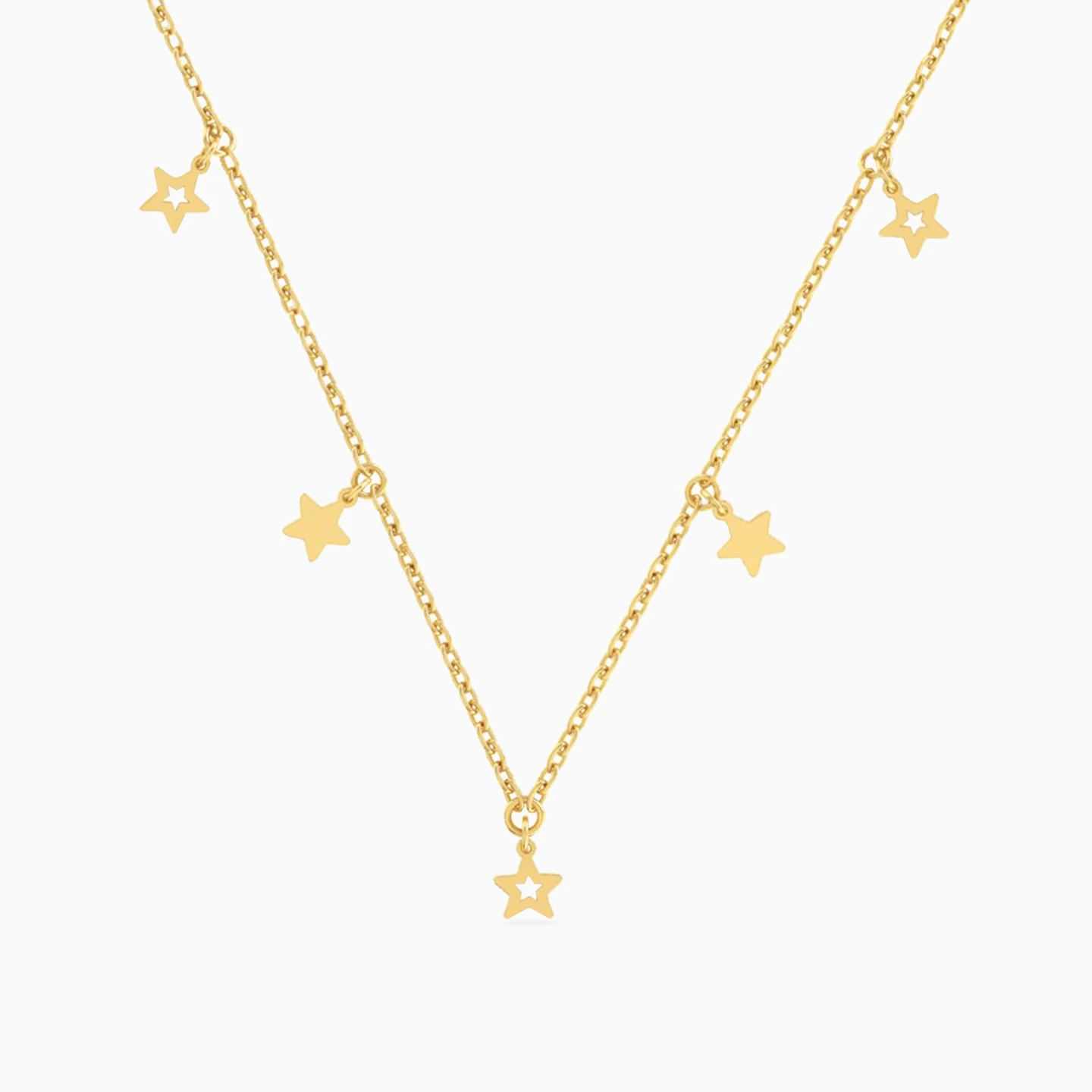 Inspired by the night sky, this starry piece will keep you shining all evening. Stringing multiple stars on an 18-karat yellow gold chain, this necklace will add tons of sparkle to your party wear and keep your daytime outfits looking elegantly chic.
