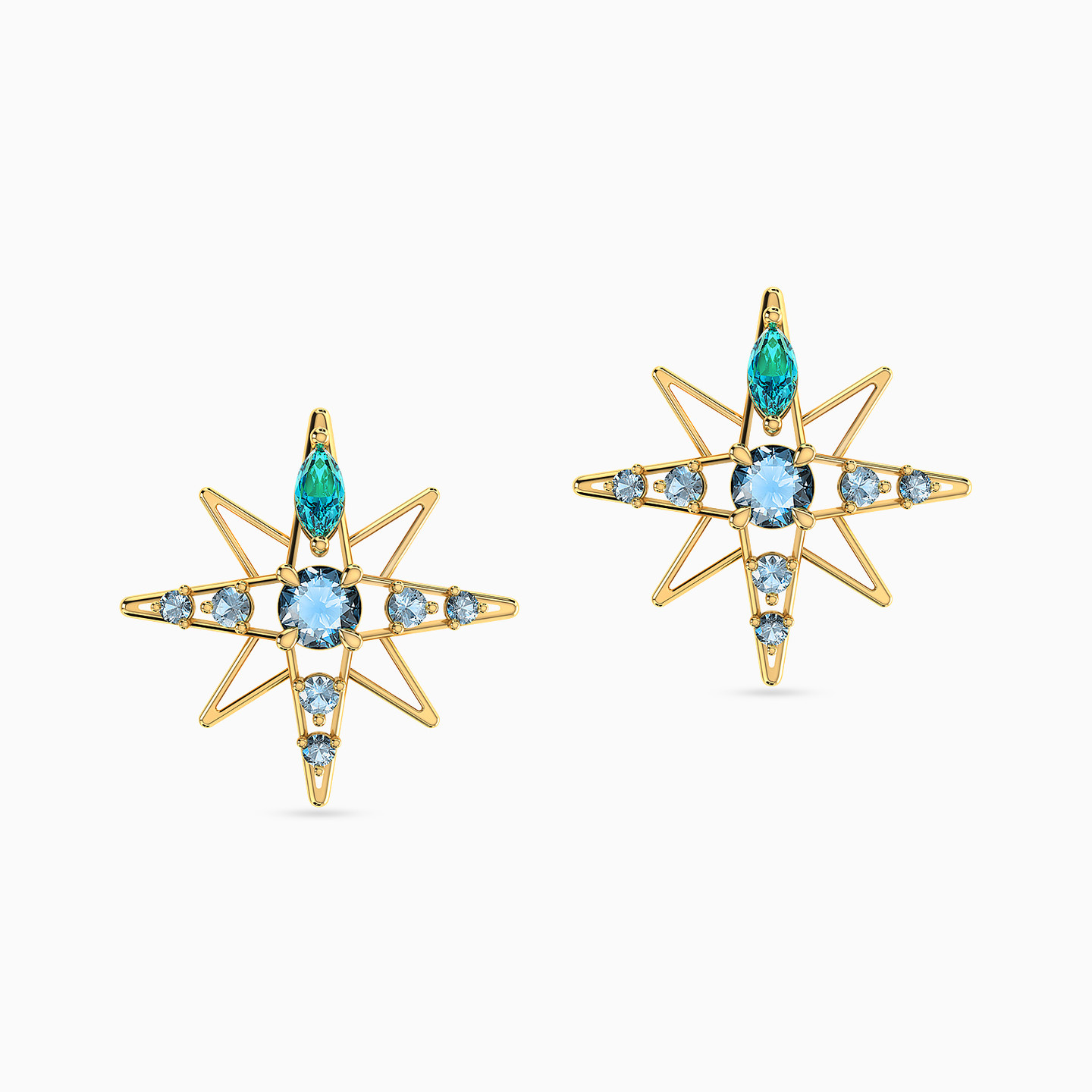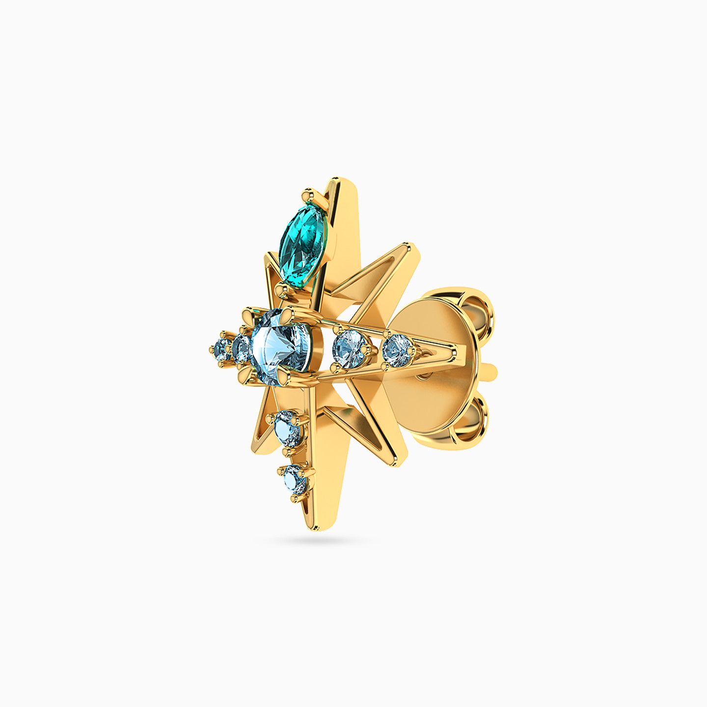 أقراط صغيرة ذهب نجمة عيار 18 قيراط مزينة بالأحجار الملونة