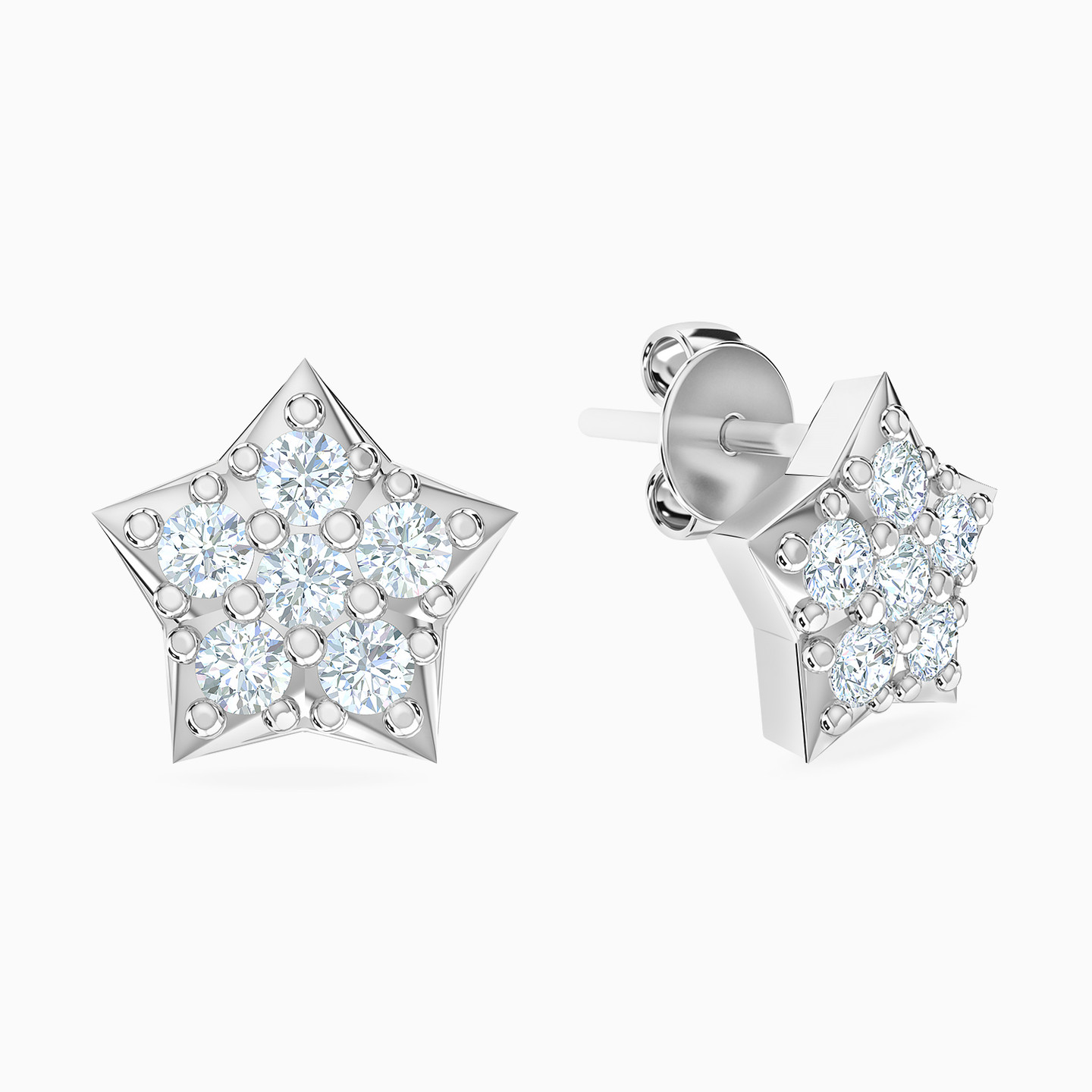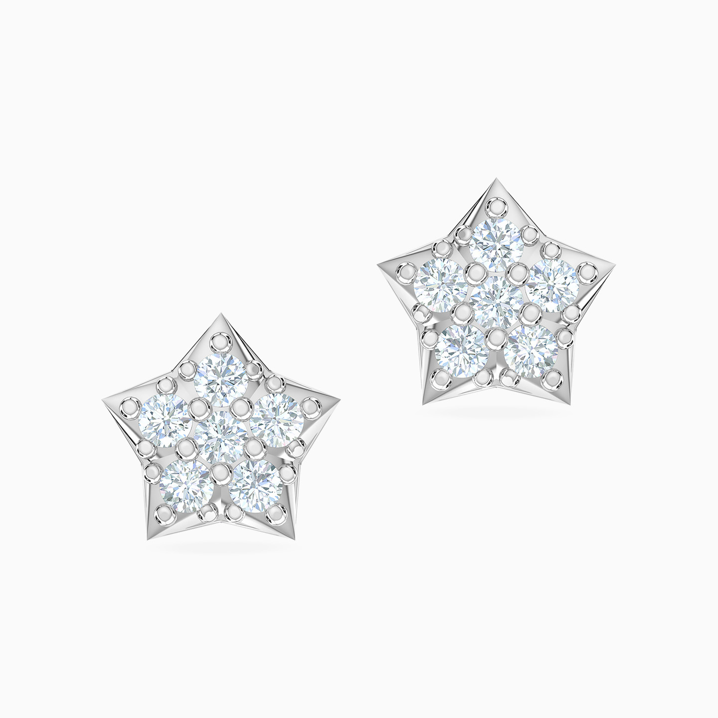 Shine bright just like your favorite celestial body with these gorgeous pair of studs by L’azurde Gold. Shaped like a star and studded with five artfully arranged sparkling cubic zirconia stones, these 18-karat white gold studs sparkle from every angle. Wear these beauties with a star-shaped pendant necklace for a surreal look.