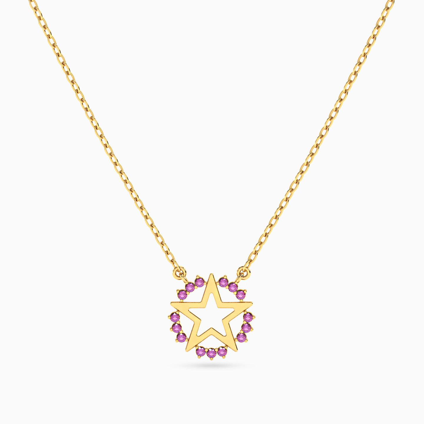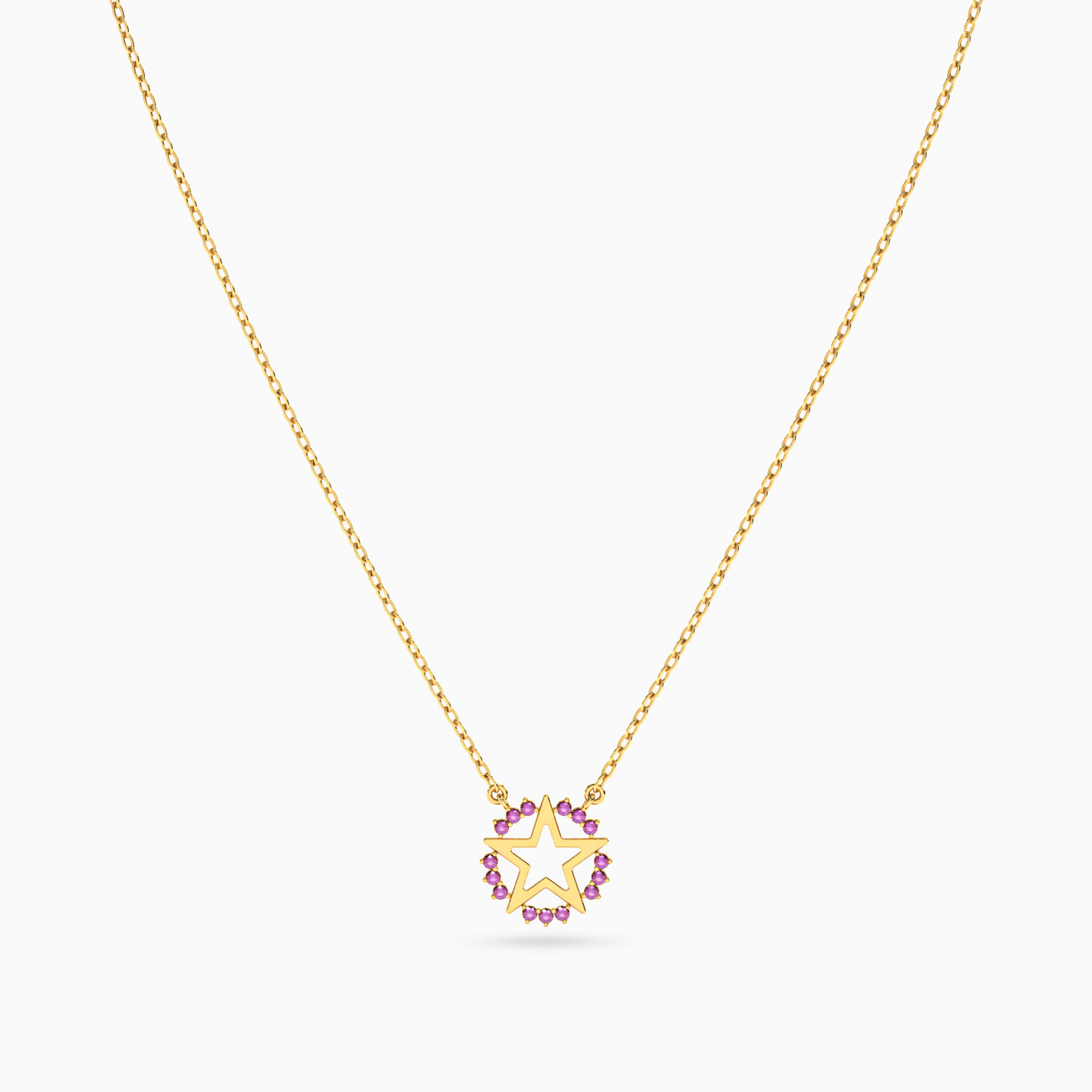 سلسلة ذهب نجمة عيار 14 قيراط مزينة بحجر بنفسجي