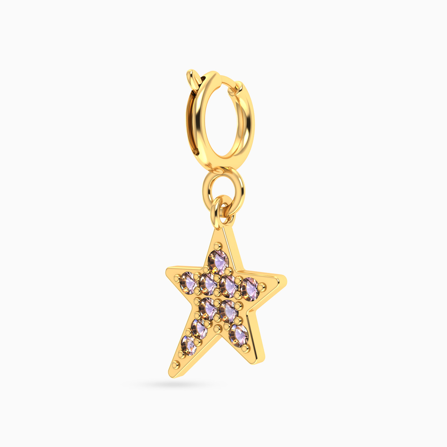 دلاية ذهب عيار 14 قيراط شكل نجمة مزينة بحجر بنفسجي