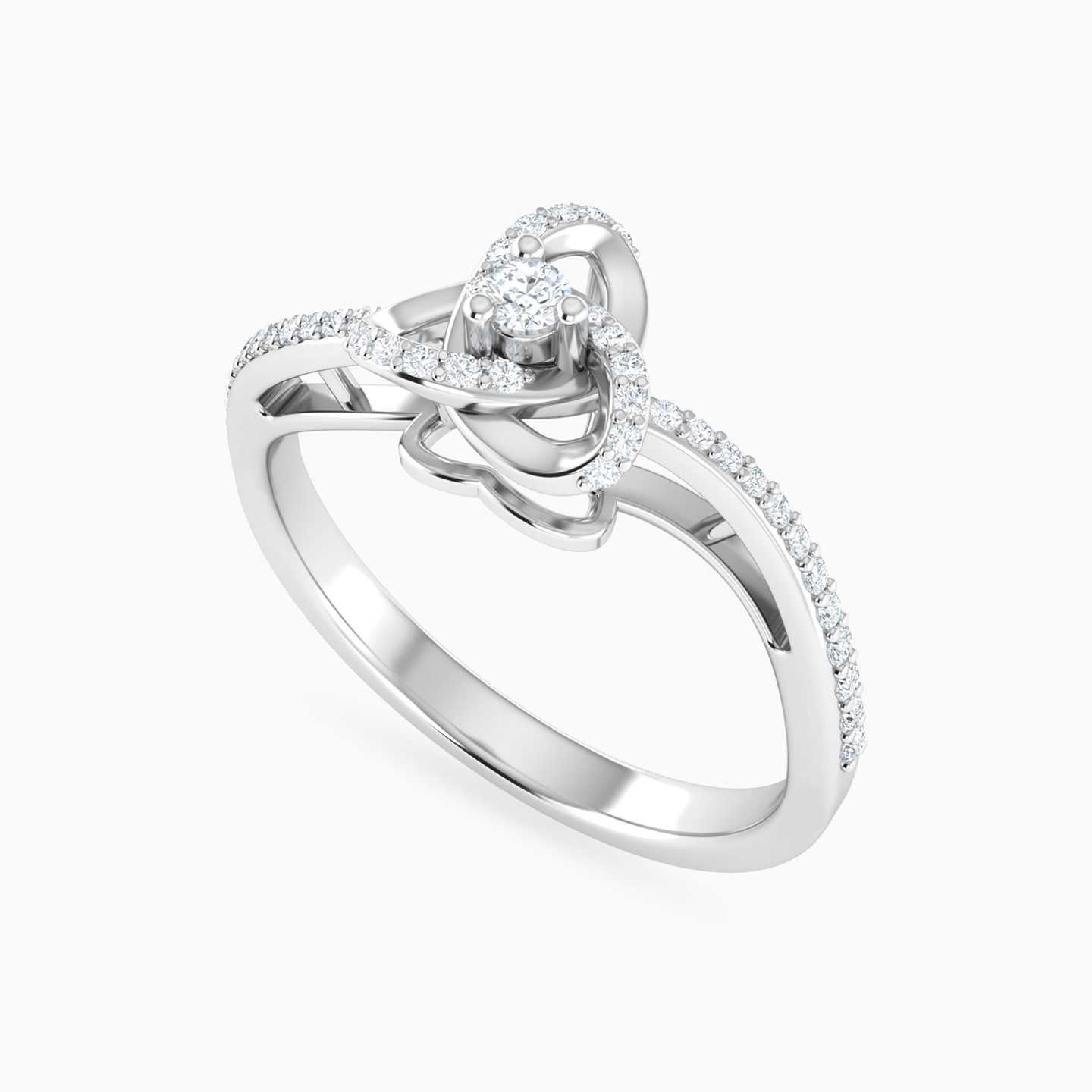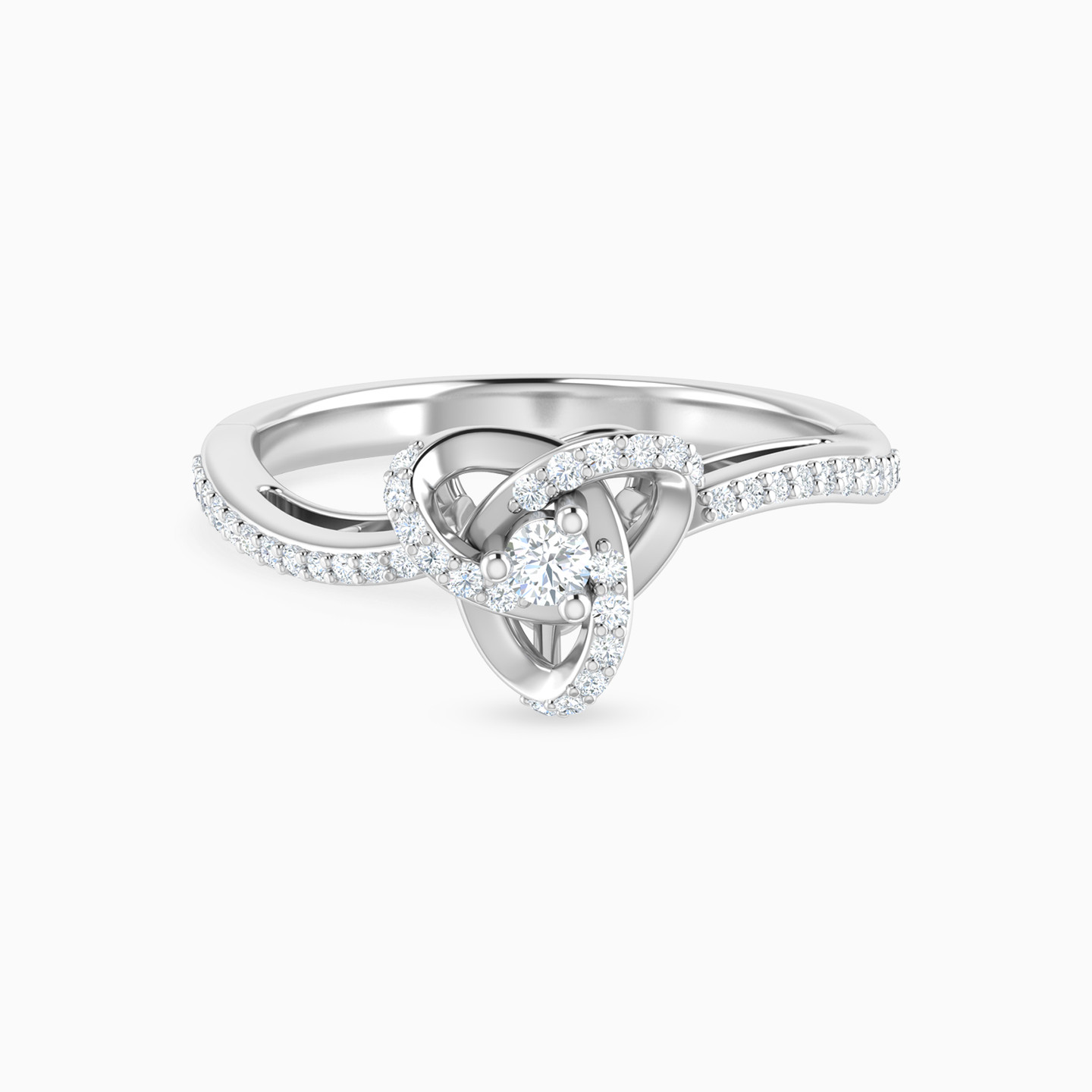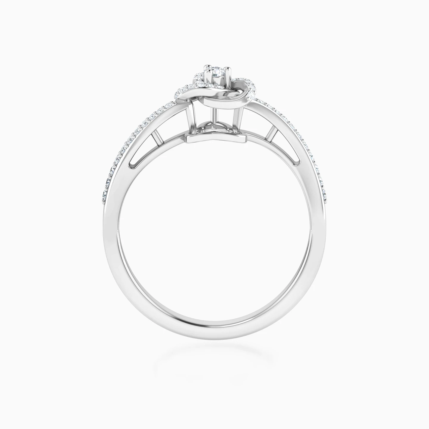 Inspired by the beautiful moments in life that hold us together comes this statement ring from L'azurde Diamonds. Featuring delicate arcs interlinked with each other and studded with 0.18-carat brilliant cut diamonds, this ring exudes a delicate and elegant vibe. This 18-karat white gold ring is perfect for styling your everyday outfits.