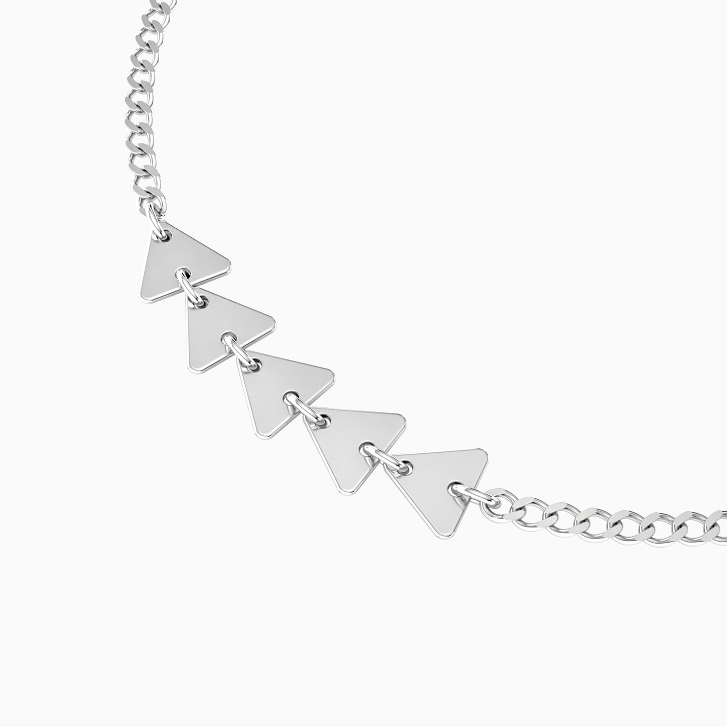 A refined geometry defines this Waves chain bracelet, designed with triangle-shaped motifs that flow in a calm, deliberate rhythm. The clean silhouette reflects clarity and inner balance, creating a look that feels modern yet timeless. Light on the wrist and easy to style, it carries quiet confidence into everyday wear. A thoughtful gift for someone who appreciates structure softened by elegance.