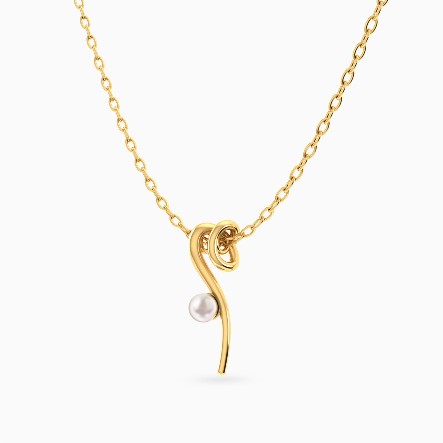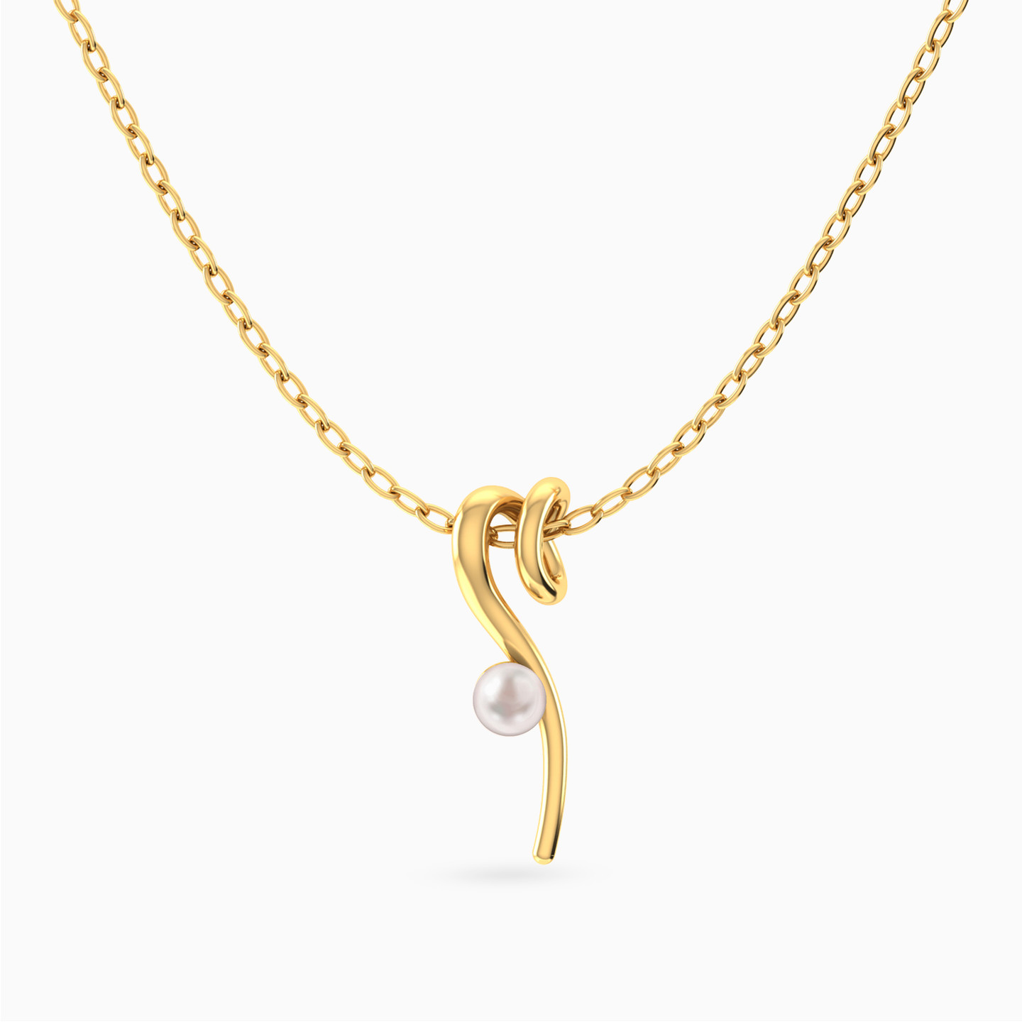 This stunning Miss L' necklace, crafted in 18k yellow gold, features a delicate twisted pendant that gracefully wraps around a single pearl drop. The unique design combines fluid lines and the natural beauty of the pearl, making it an exquisite choice for those seeking a refined yet modern style.