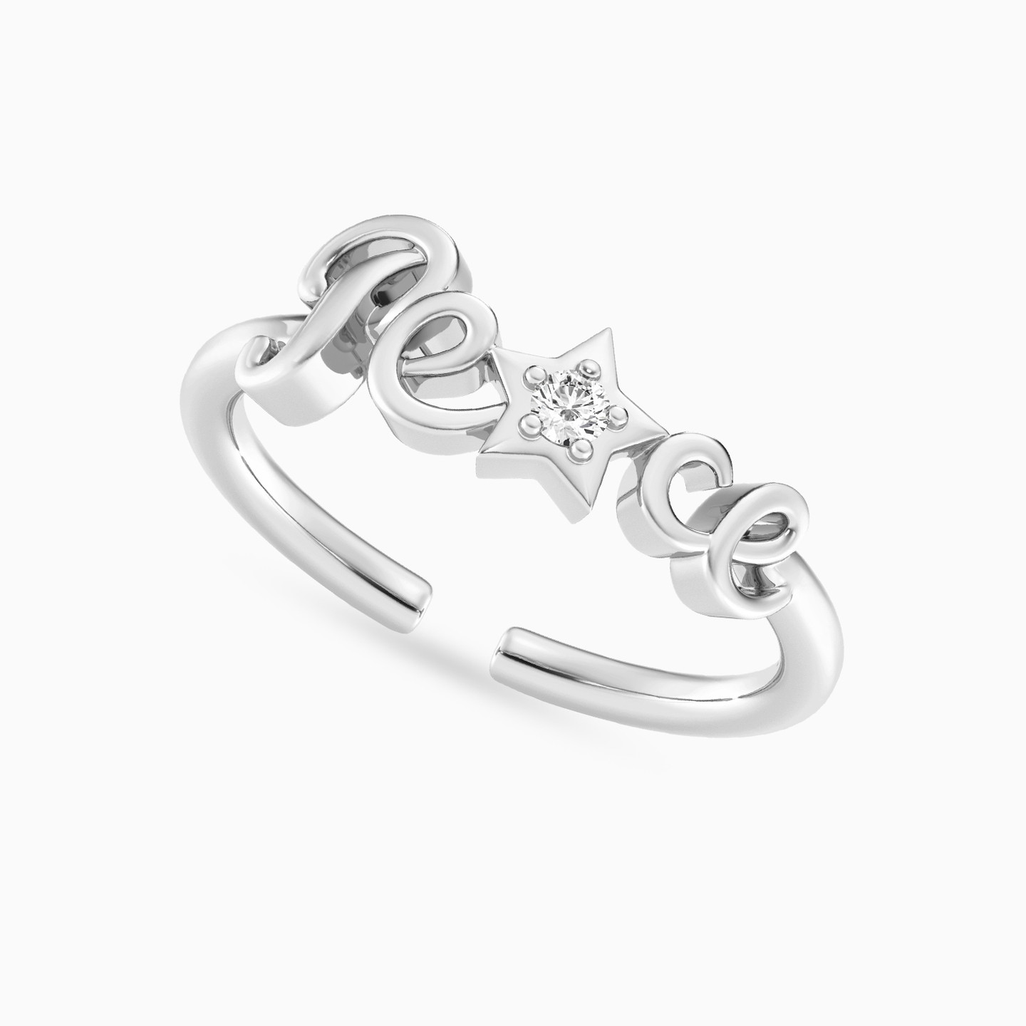 خاتم فضة إسترليني شكل كلمة (Peace) مزين بألماس مختبرات