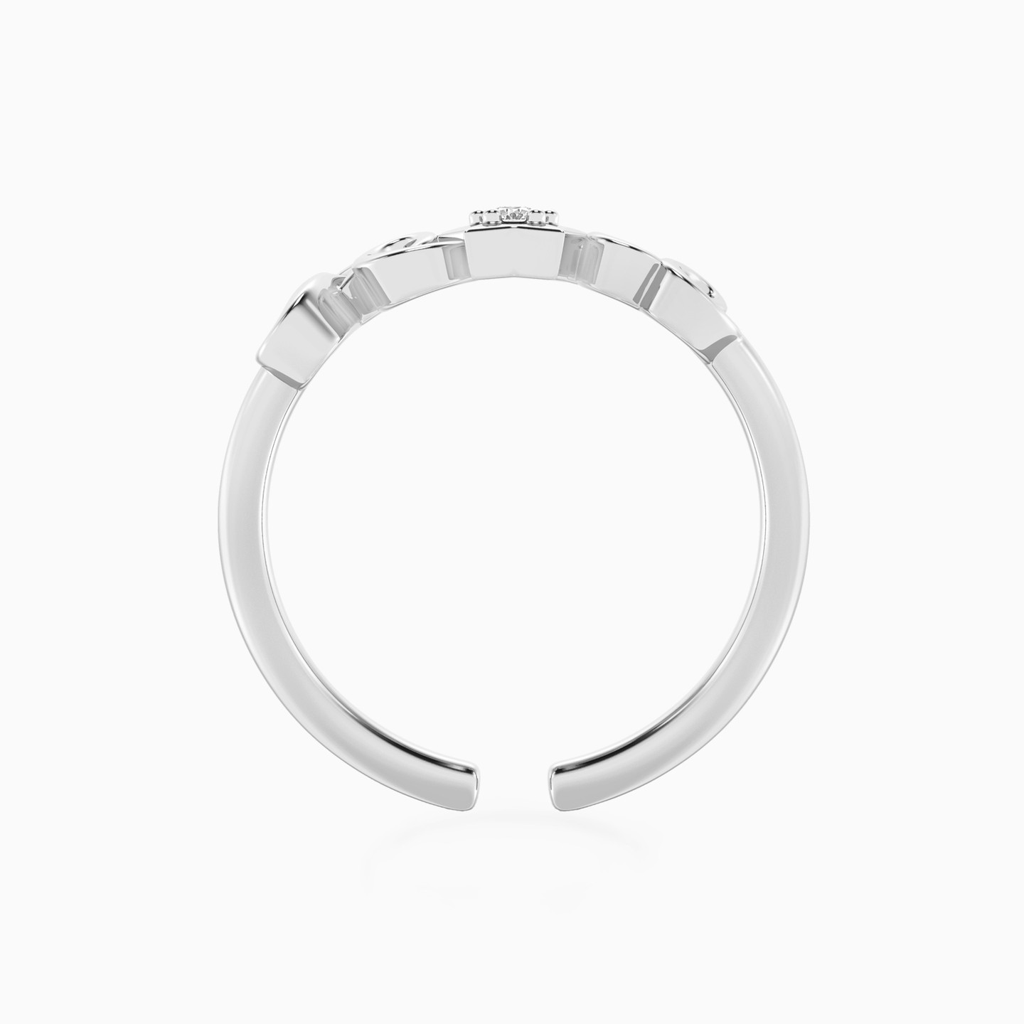 Discover affordable glamour and timeless style with this piece from Waves! This sterling silver ring radiates inspiration with the word “Peace” elegantly sculpted and highlighted by a delicate heart that embraces a sparkling lab-grown diamond at its center. A delicate and meaningful piece, perfect for those who love to carry a touch of positivity and graceful shine every day.