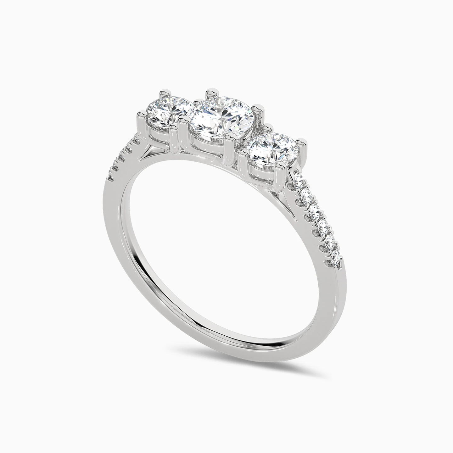 Express your love by offering your special someone this stunning diamond ring from L'azurde. Crafted in 18-karat white gold with three eye-catching brilliant cut lab grown diamonds at the center, this ring oozes sophistication. You're sure to sweep her off her feet when you slip this magnificent diamond ring on her finger.