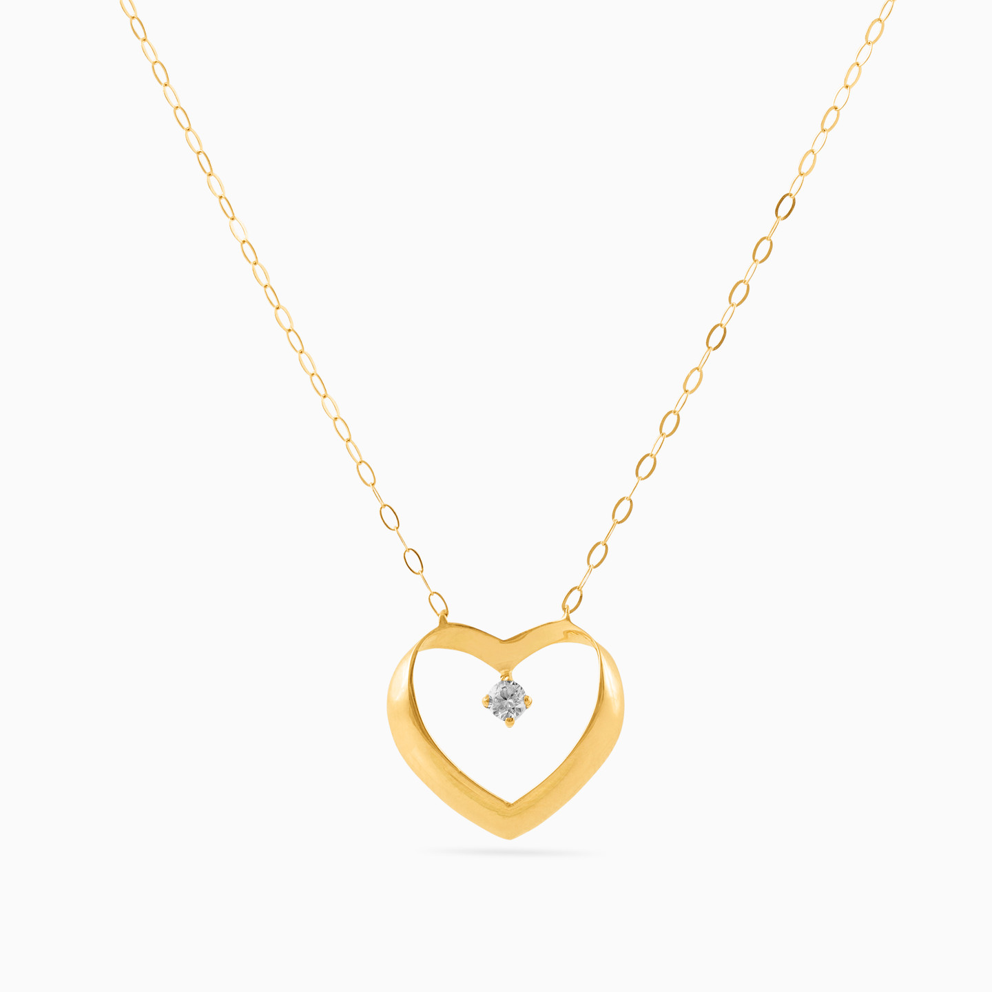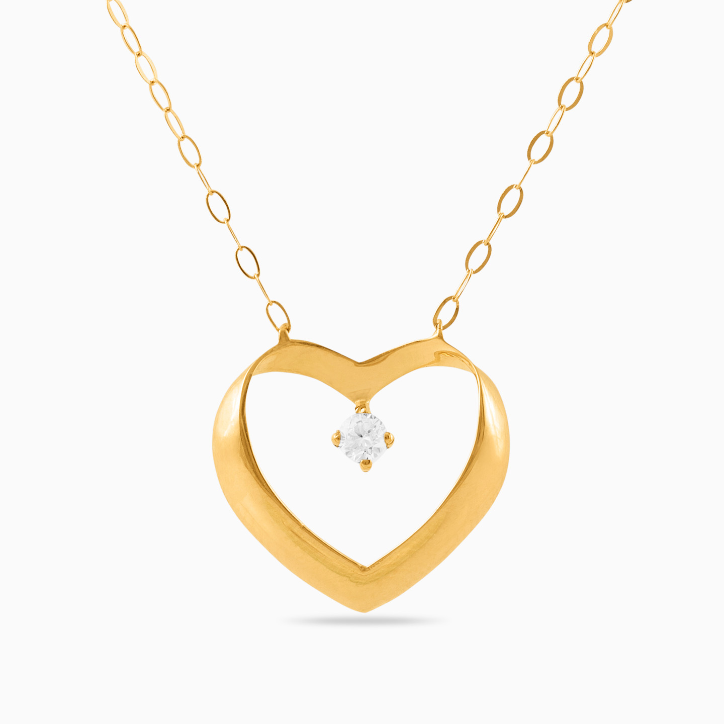 With a chic rounded silhouette, this elegant heart pendant necklace from Miss L' makes a lovely addition to a work or weekend wardrobe. Fashioned in 18-karat yellow gold, the open design offers eye-catching beauty while a cubic zirconia at the center brings a hint of sparkle. We love how this feminine pendant can take you from the office to a sophisticated soiree with ease.