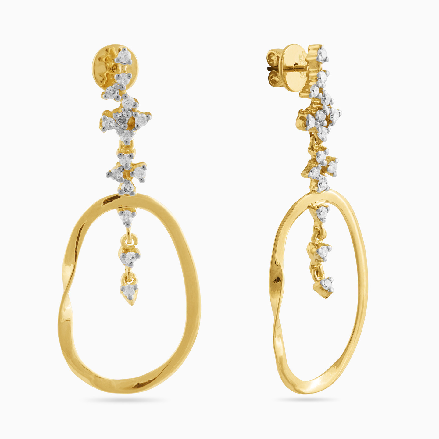 أقراط متدلية ذهب بيضاوية عيار 18 قيراط مزينة بالألماس