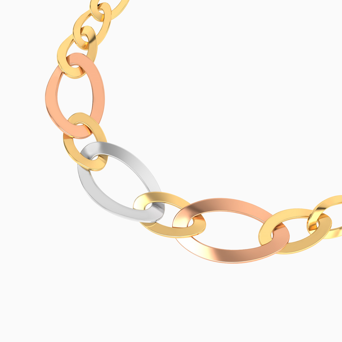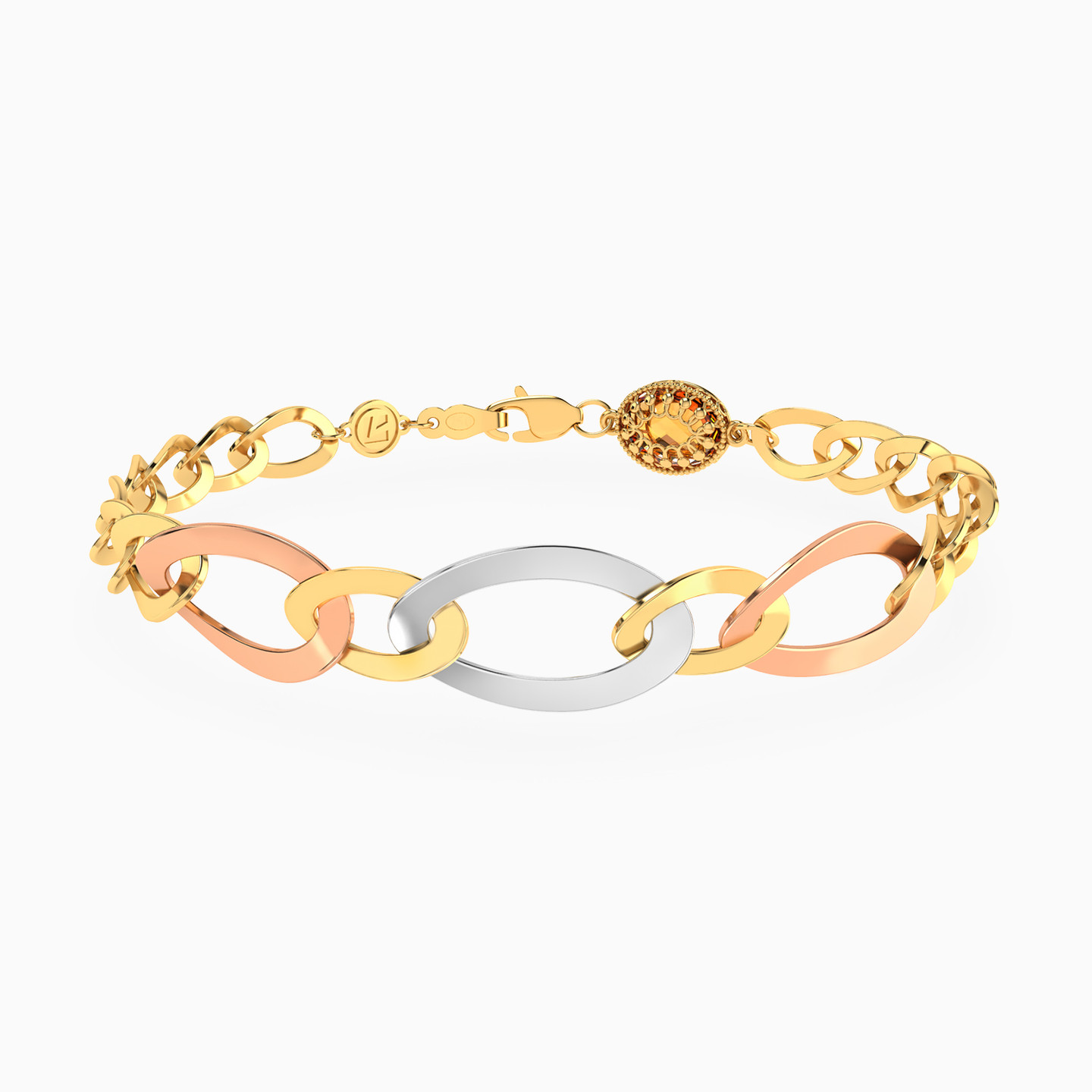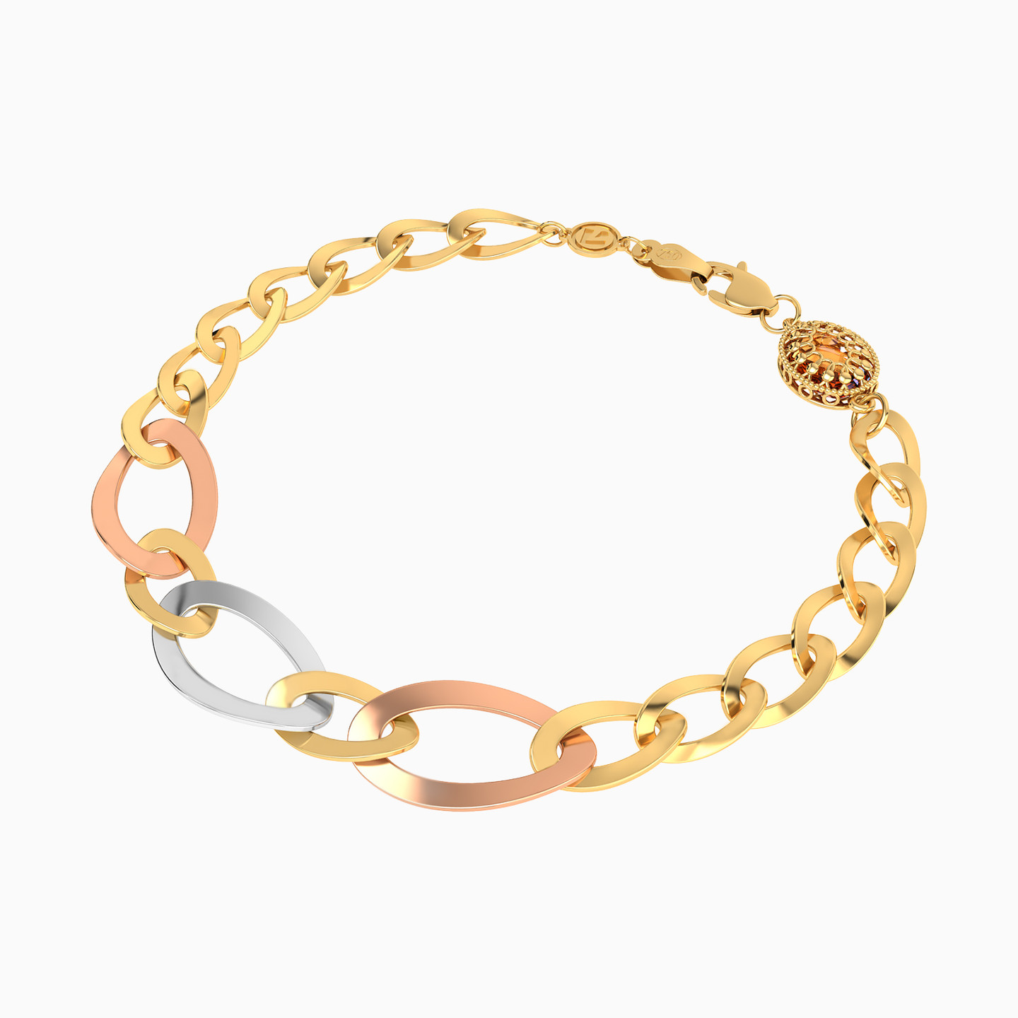 Shine bright, shine bold, feel beautiful by wearing this stylish chain bracelet from L'azurde Gold. Gleaming in 21-karat yellow, white and rose gold, this eye-catching bracelet features bold links in various sizes. We love this bracelet worn with work attire as well as with evening wear.