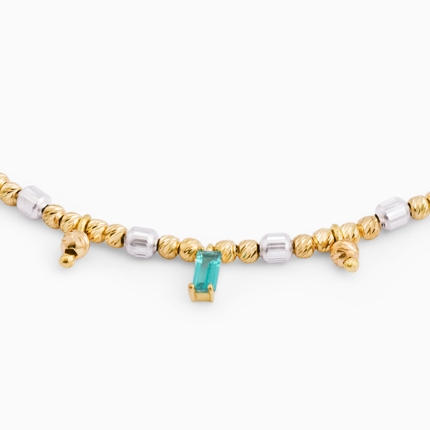 Set yourself apart with this gorgeous bracelet from L’azurde Gold. White gold beads and colored stones in a breathtaking shade of sea-green give this spectacular 18-karat yellow gold bracelet its irresistible beauty. Elegant and eye-catching, this feminine bracelet is sure to become your go-to favorite for workdays and weekends.
