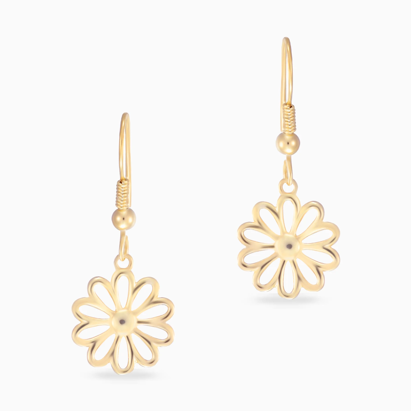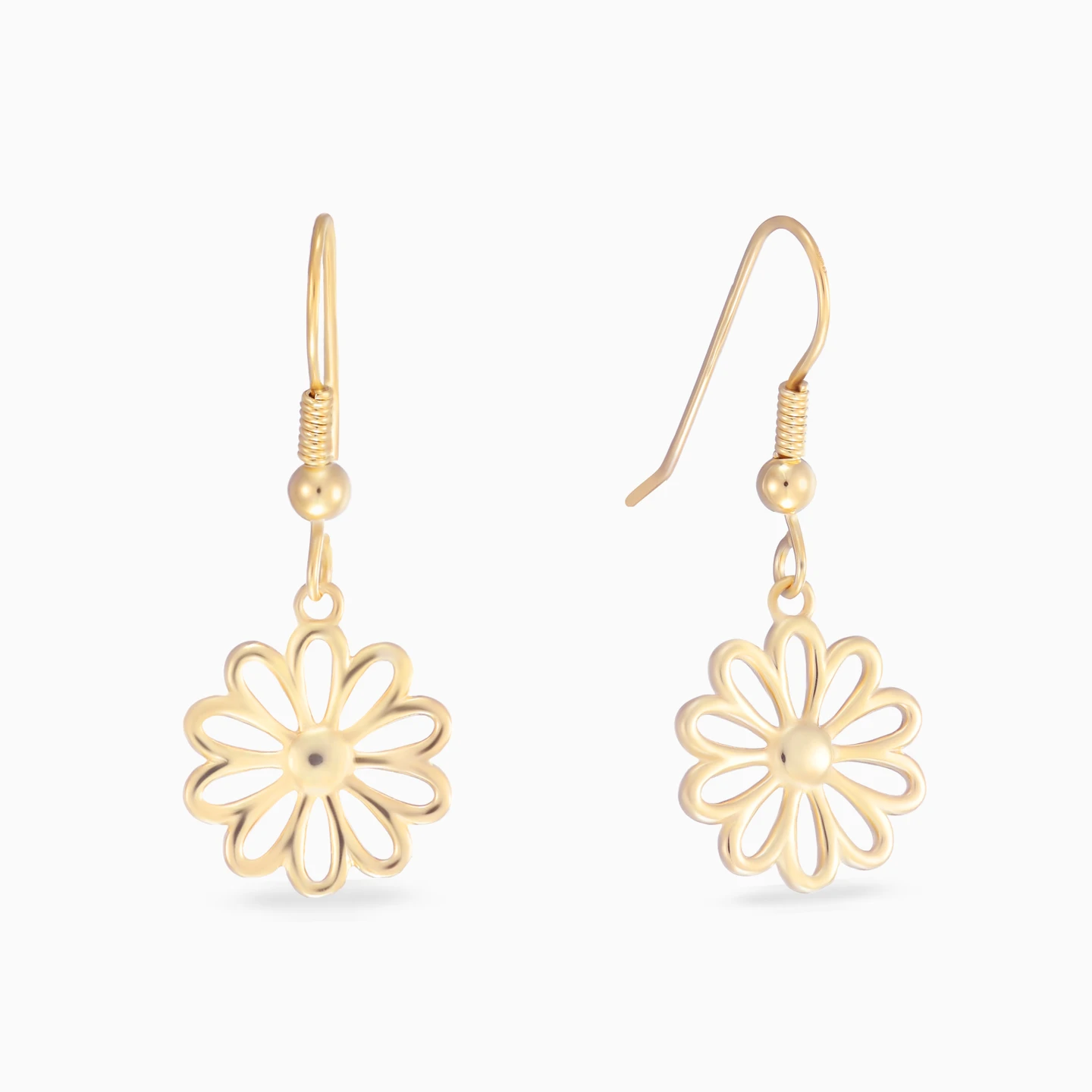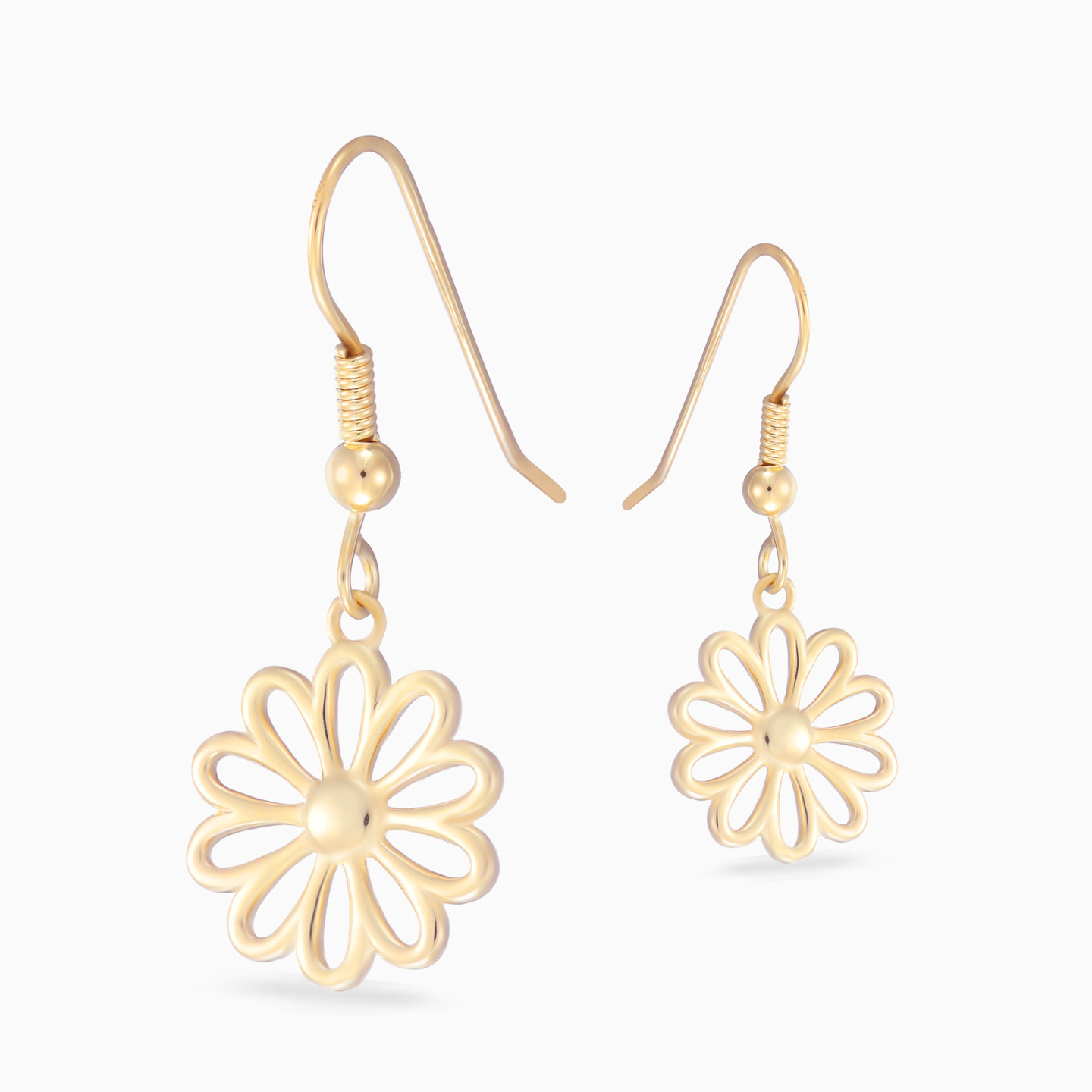 A gentle bloom comes to life in these Waves drop earrings, shaped like an open flower with softly sculpted petals in yellow gold plating. The design captures a sense of freshness and quiet optimism, adding lightness to every movement. Expressive yet easy to wear, they feel effortlessly personal. A thoughtful gift that reflects renewal, warmth, and natural grace.