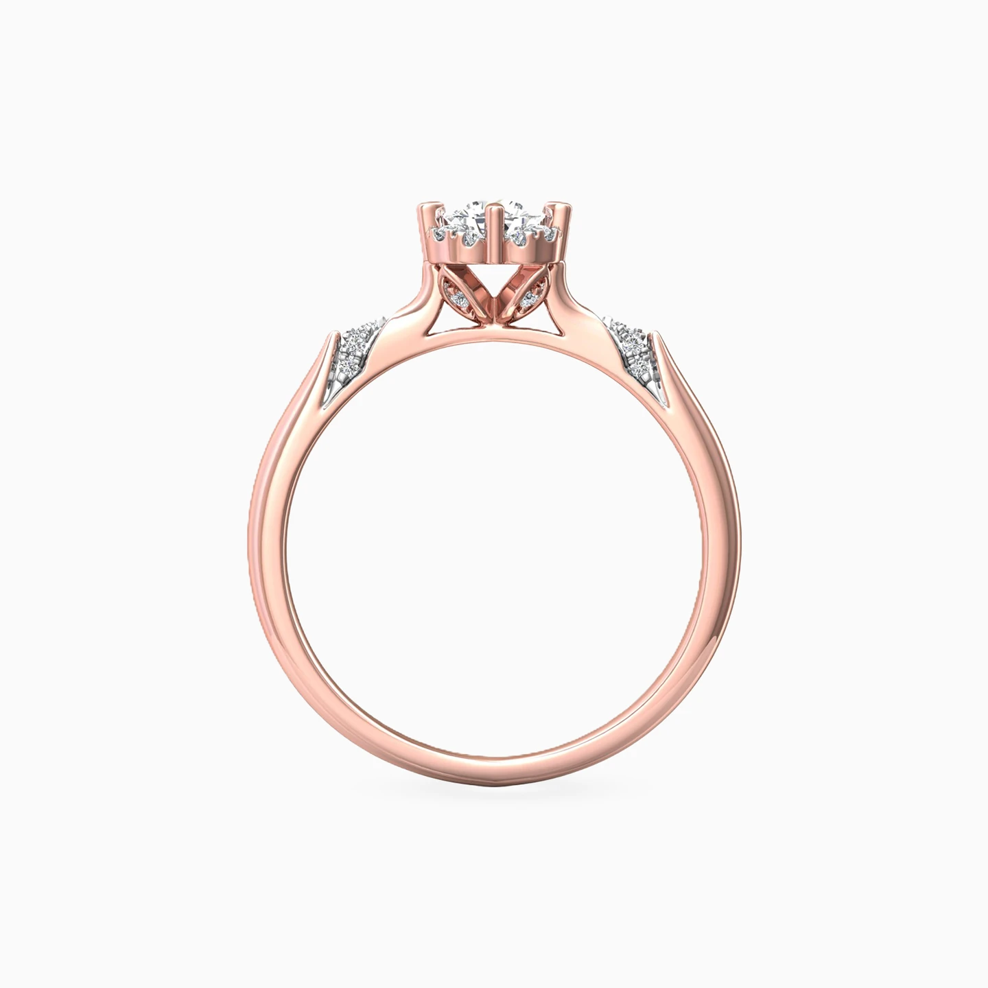 Elevate your look to luxury with this shiny piece from Lazurde Diamonds! This exquisite 18K rose gold statement ring features a centeral circle adorned with sparkling diamonds, beautifully framed by diamonds on each side. The intricate design and radiant brilliance create a timeless masterpiece, making this ring the perfect choice for adding luxury and elegance to any occasion.