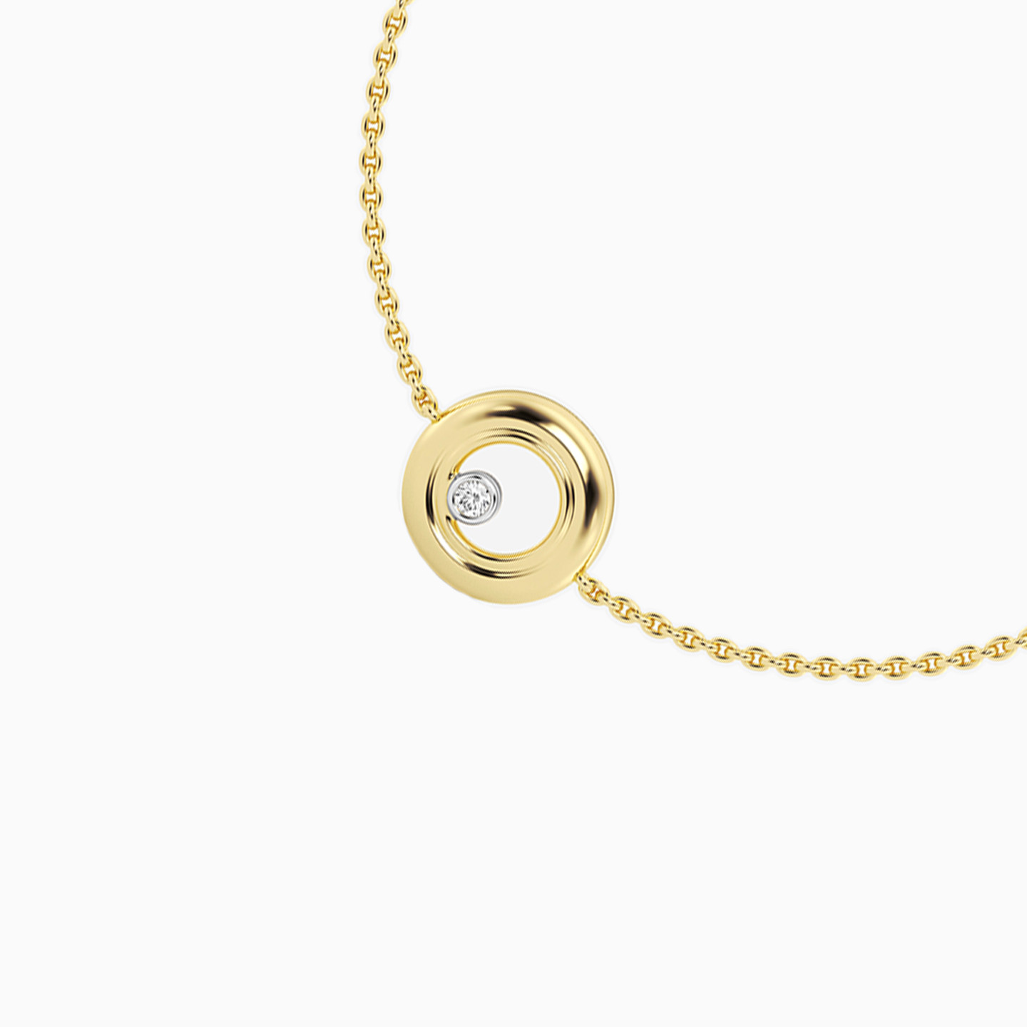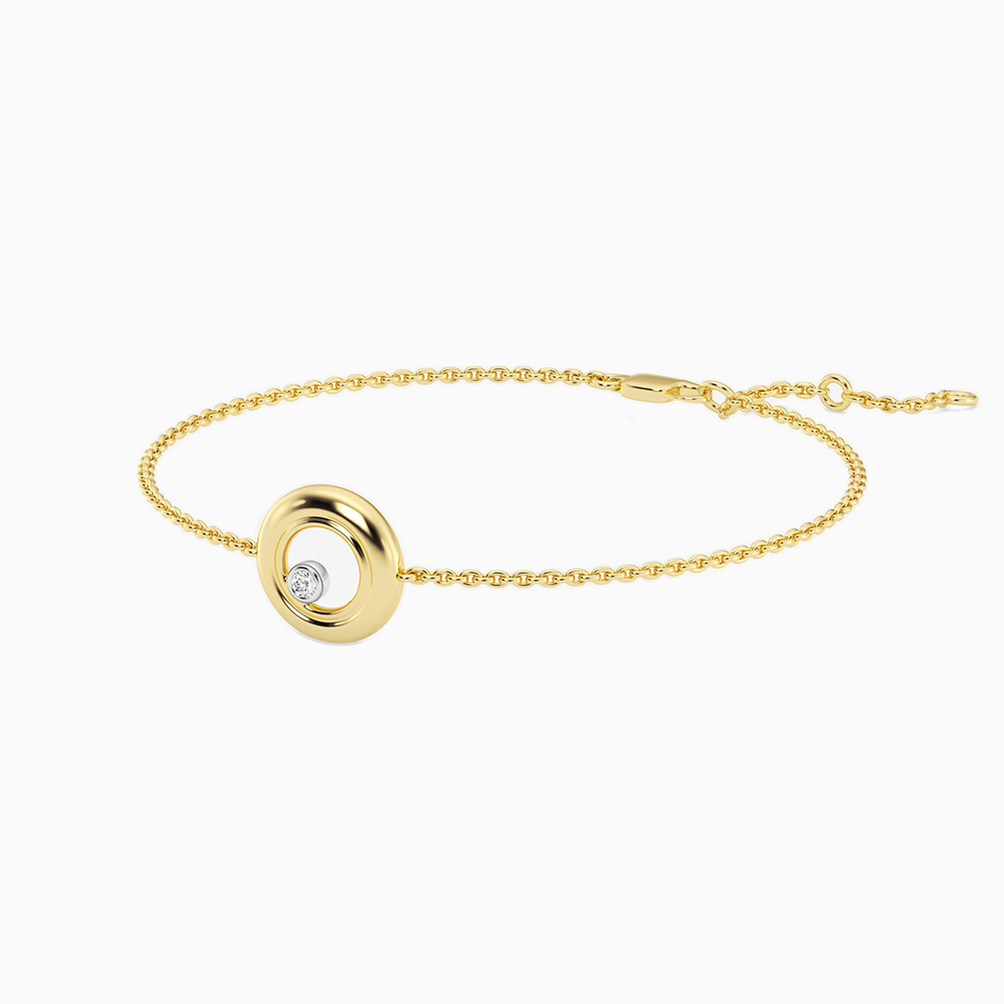 A jewelry box staple, this minimalist chain bracelet from Waves is sure to become your everyday favorite. Whether you pair it with the matching earrings and pendant or wear it alone, this stylish open circle bracelet is crafted in yellow gold plate and features an offset lab grown diamond for additional radiance. A timeless look for daytime or evening, this bracelet has eye-catching shimmer.