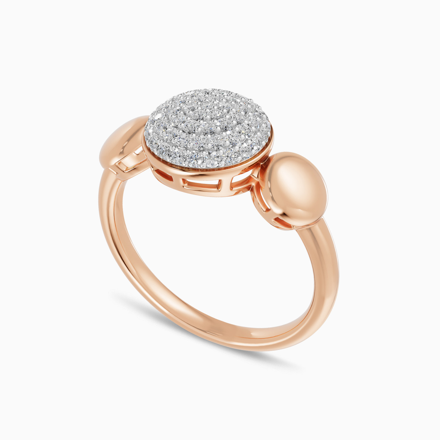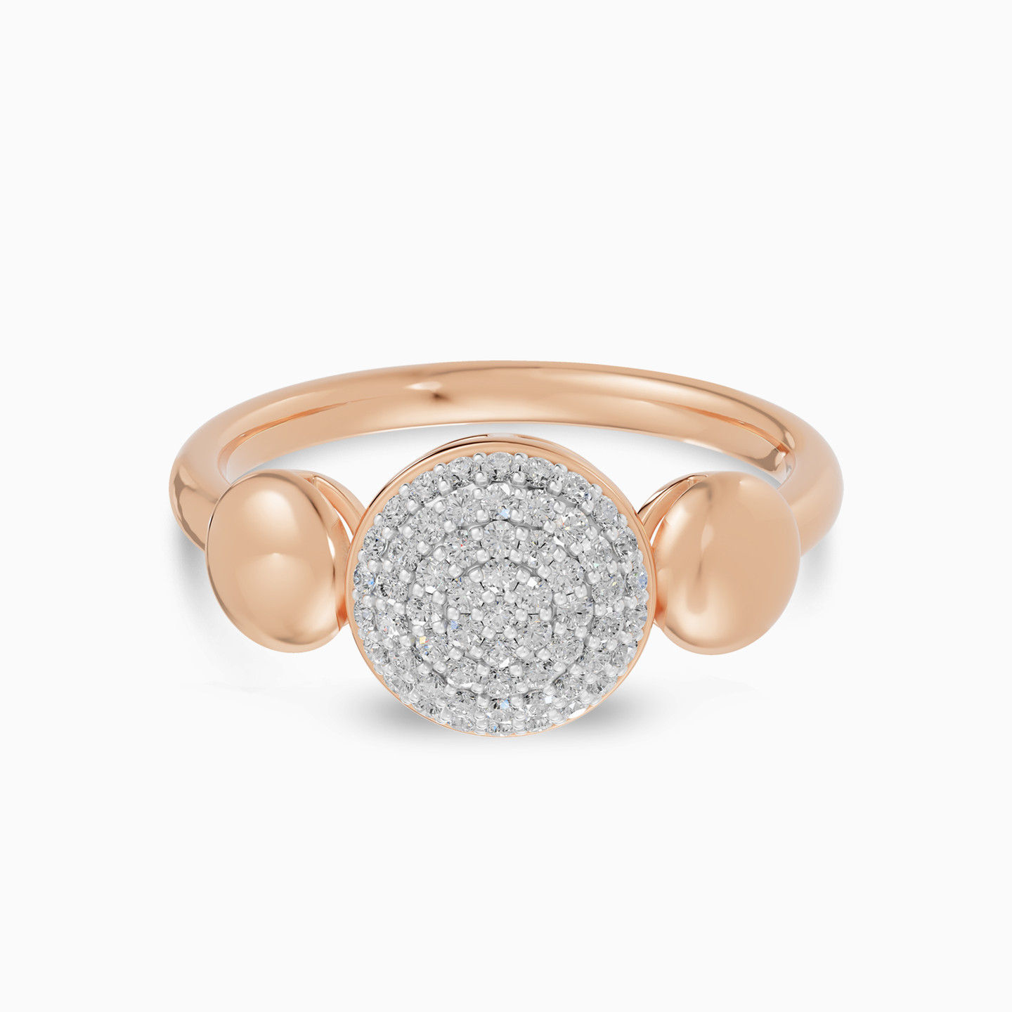 A modern spark with timeless elegance. This Lazurde Diamonds ring features a circle-shaped centerpiece paved with radiant diamonds, set between two other round shapes on a sleek polished band. A refined design that blends contemporary minimalism with lasting brilliance, making it a perfect investment in style.