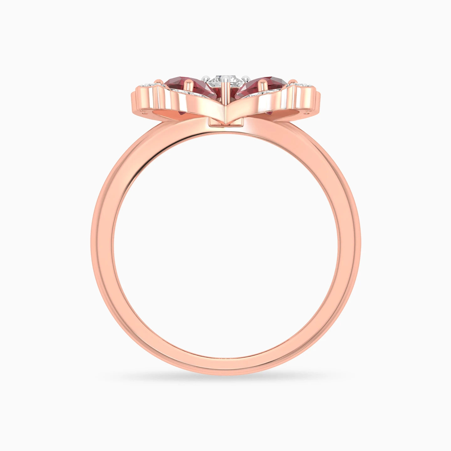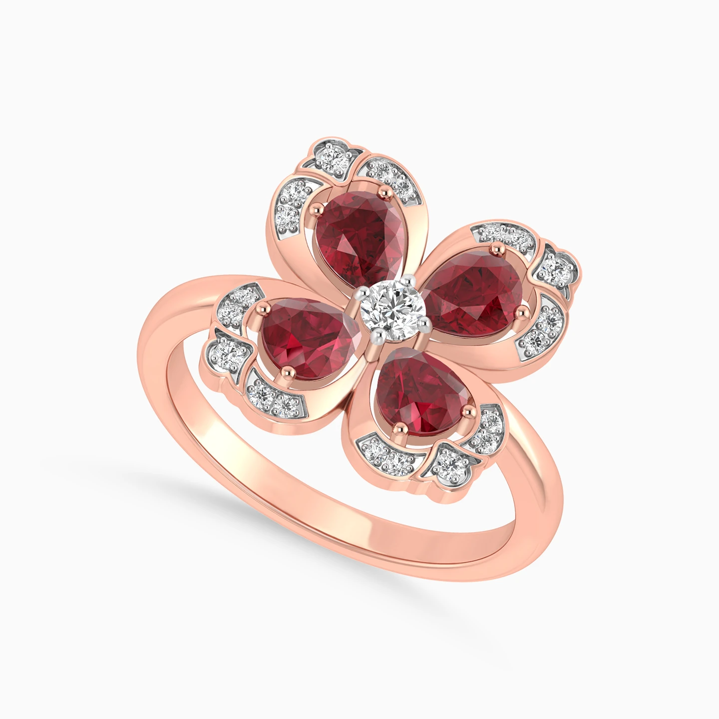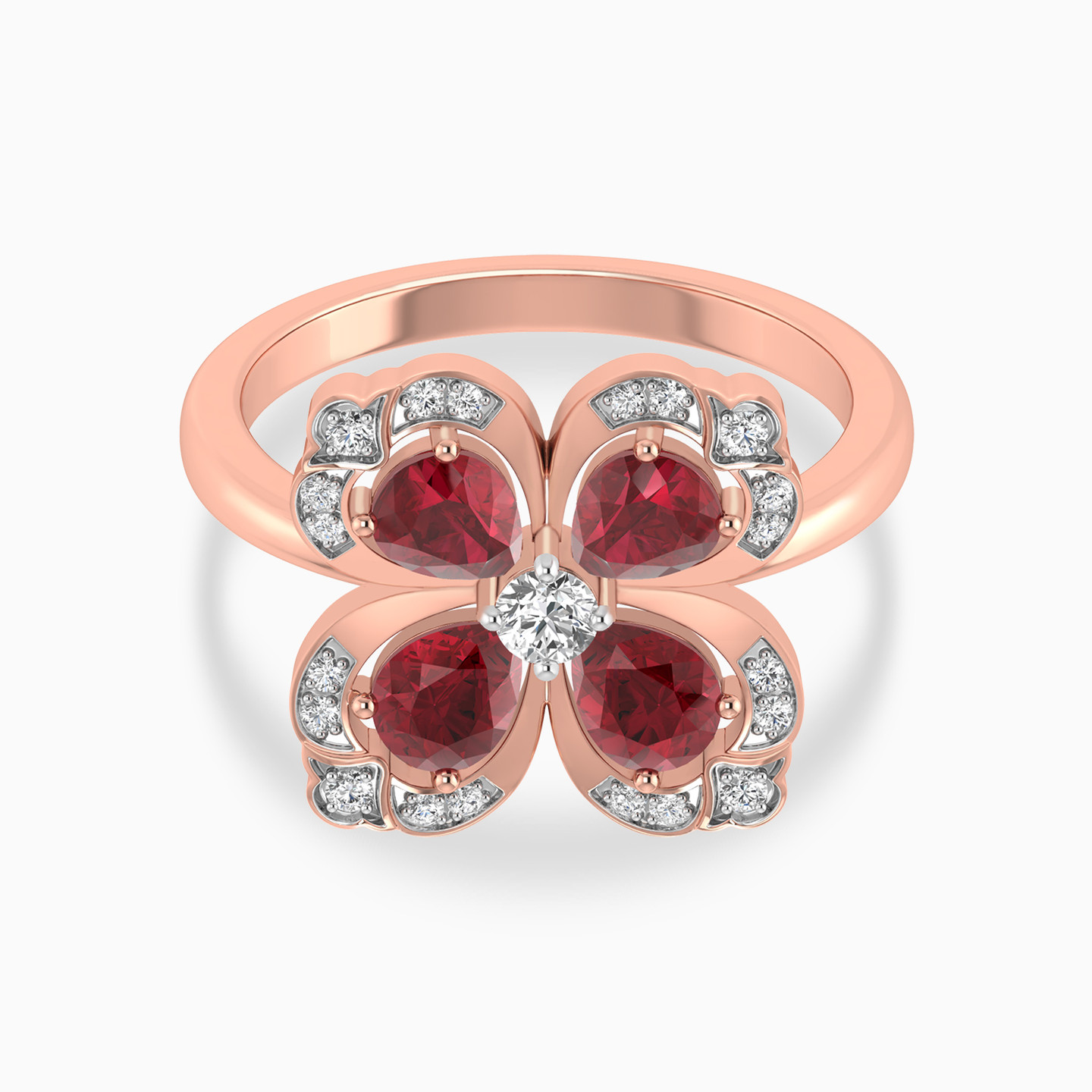 خاتم ذهب زهرة البرسيم عيار 18 قيراط مزين بالألماس وحجر أحمر