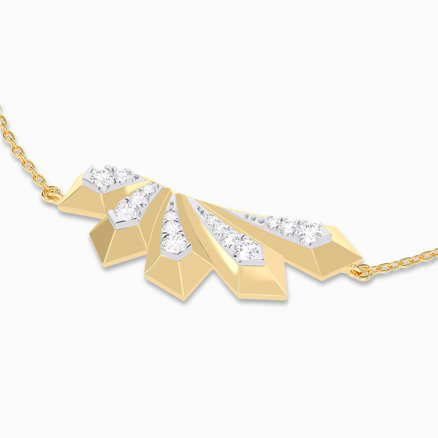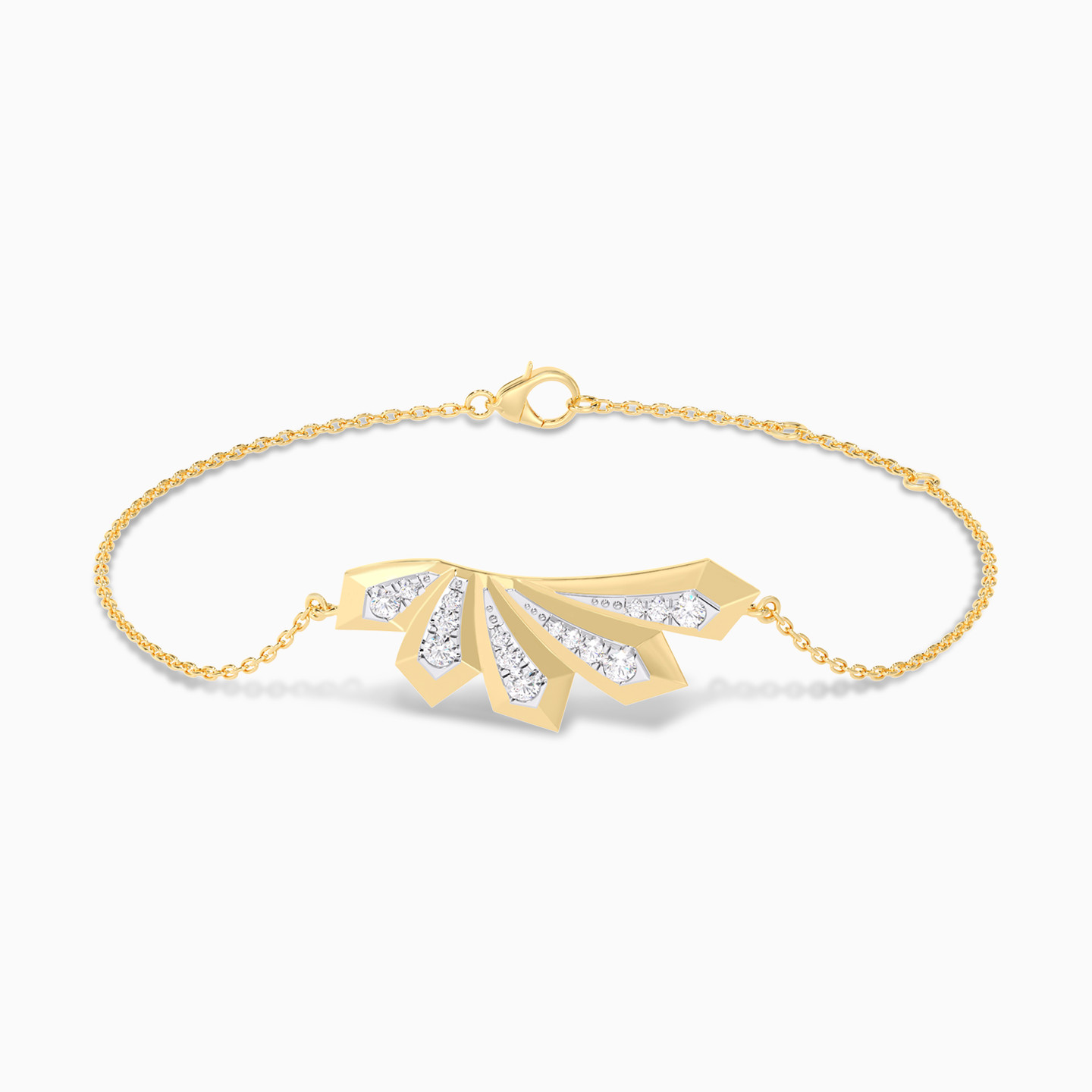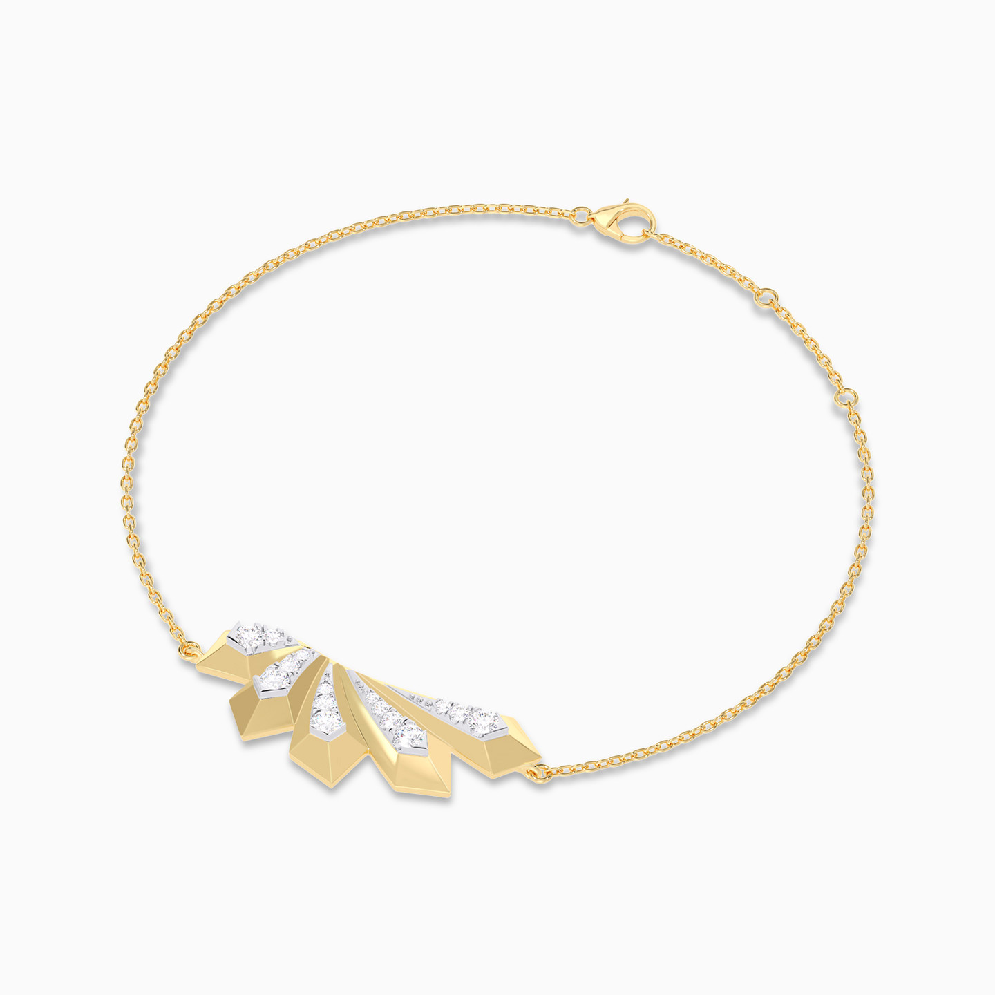 Elevate your look to luxury with this shiny piece from Lazurde Diamonds! This exquisite 18K yellow gold chain bracelet features a crystal-inspired pendant, designed to reflect the raw beauty of natural crystals with its intricate facets and geometric elegance. Adorned with brilliant diamonds, the pendant shimmers with breathtaking radiance, catching the light with every movement. Designed for effortless sophistication, this bracelet drapes gracefully around the wrist, making it the perfect statement piece for those who appreciate modern luxury with a luminous touch.