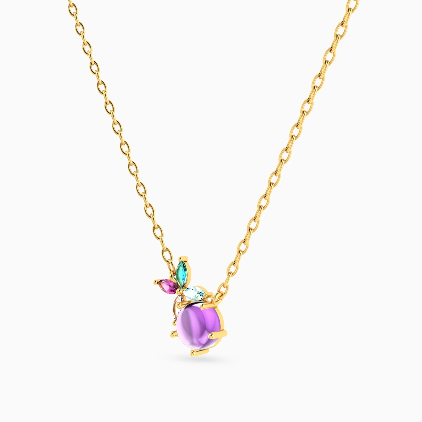 Unfurl the magic and beauty of nature with this exquisite floral pendant necklace by Instyle. A dazzling round-shaped colored stone is accented by a stunning four-petal flower brought to life by marquise-shaped colored stones sitting on top of it. All of this comes in shiny 18-karat yellow gold, making this truly dainty and delicate pendant necklace a personal favorite.