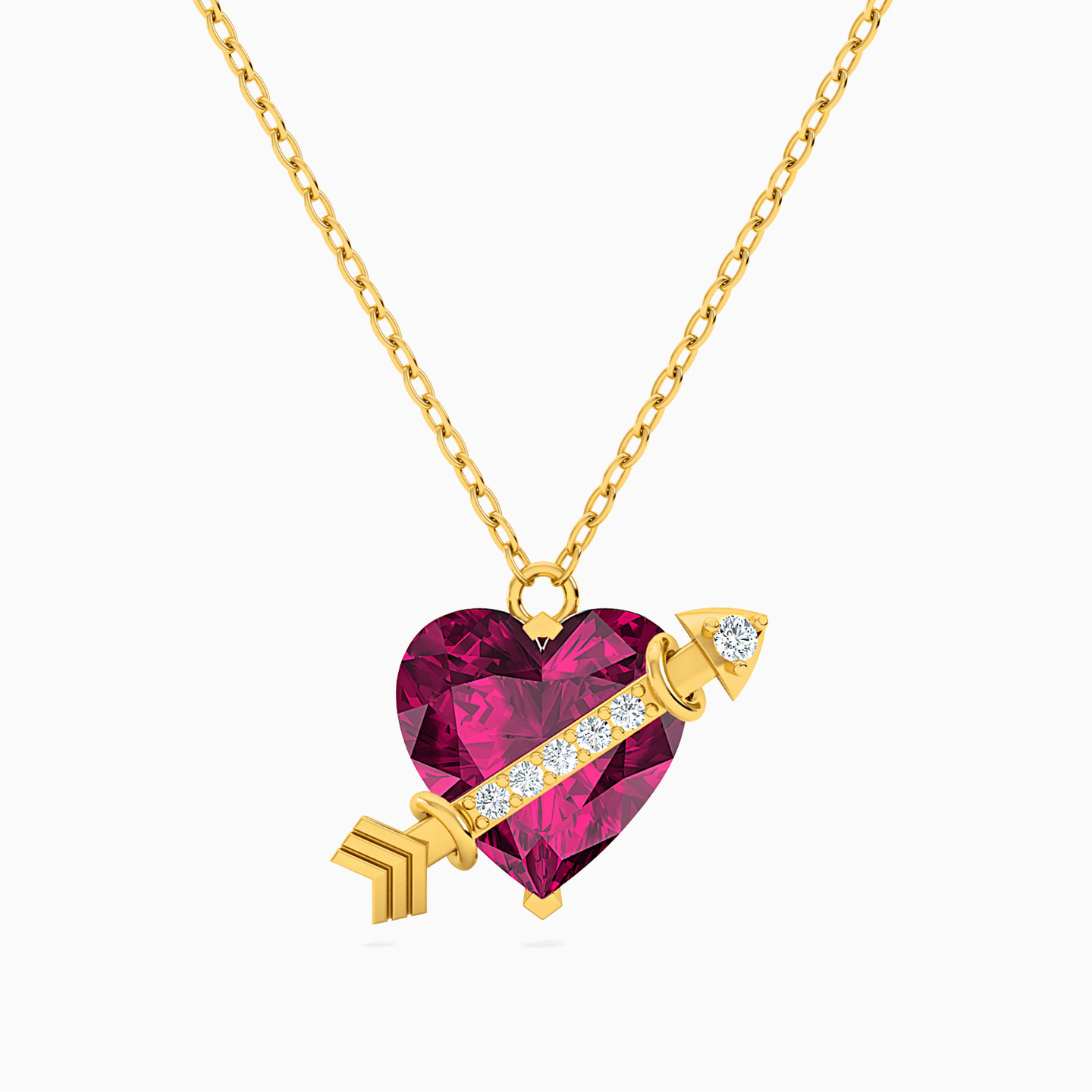 Send an arrow through the heart with this necklace from L'azurde Instyle. The deep pink stone is shaped to resemble a heart and features a diamond studded arrow. Suspended from an 18-karat yellow gold chain, this statement piece will make a good choice whether you're picking it up for yourself or as a gift for someone.
