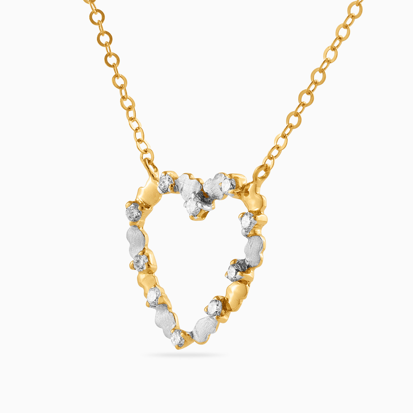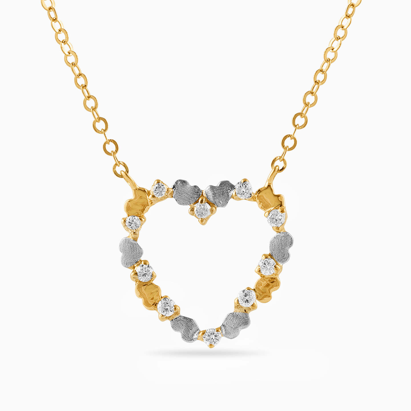 Add a romantic touch to any look by wearing this charming heart-shaped necklace from L'azurde Diamonds. Beautifully crafted in a mix of 18-karat white and yellow gold, this elegant heart pendant necklace features gold heart nuggets alongside 0.17-carat brilliant cut prong-set diamonds that offer eye-catching shimmer and shine. We love how this unique design elevates a classic style, adding dazzle to every outfit.
