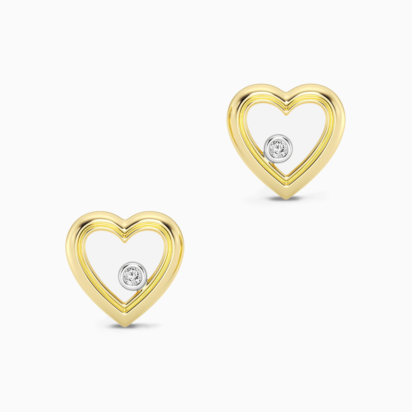 أقراط صغيرة مطلية بالذهب قلب مزينة بألماس مختبرات