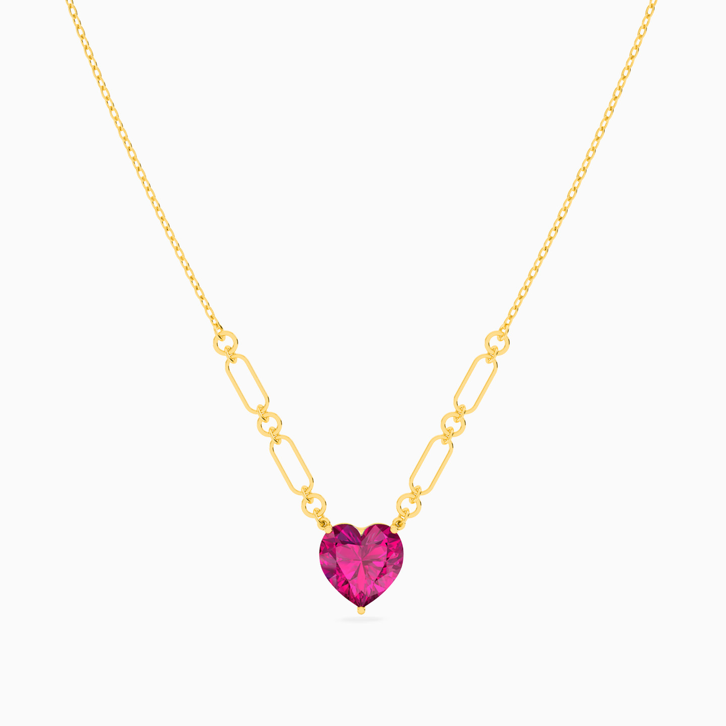 Bringing boldness to your outfit, this sharp necklace from L’azurde Instyle is sure to make a statement everywhere you go. The pink stone heart is suspended from a yellow gold chain that's accented with chain link accents to give it a solid look. Wear this with a matching bracelet from our collection for maximum effect.