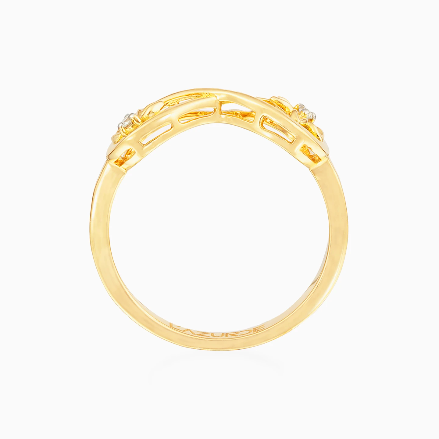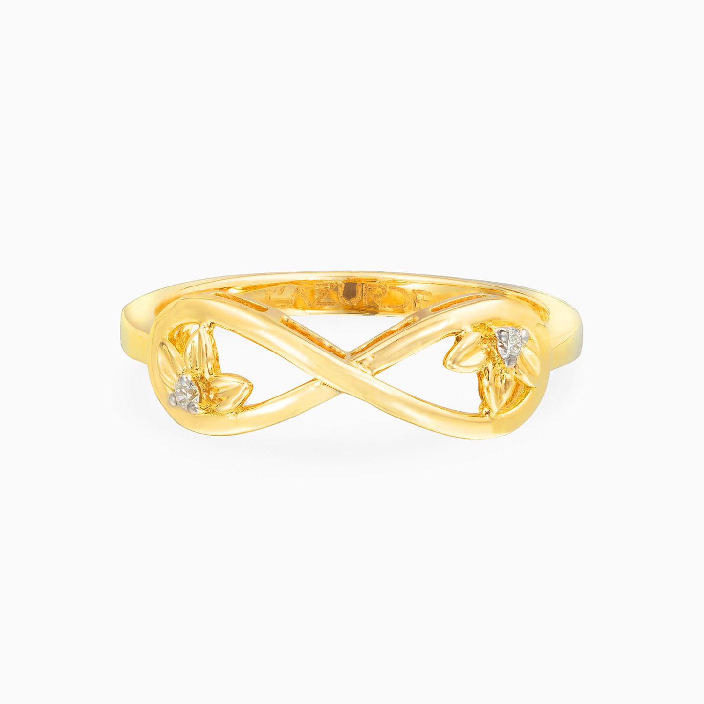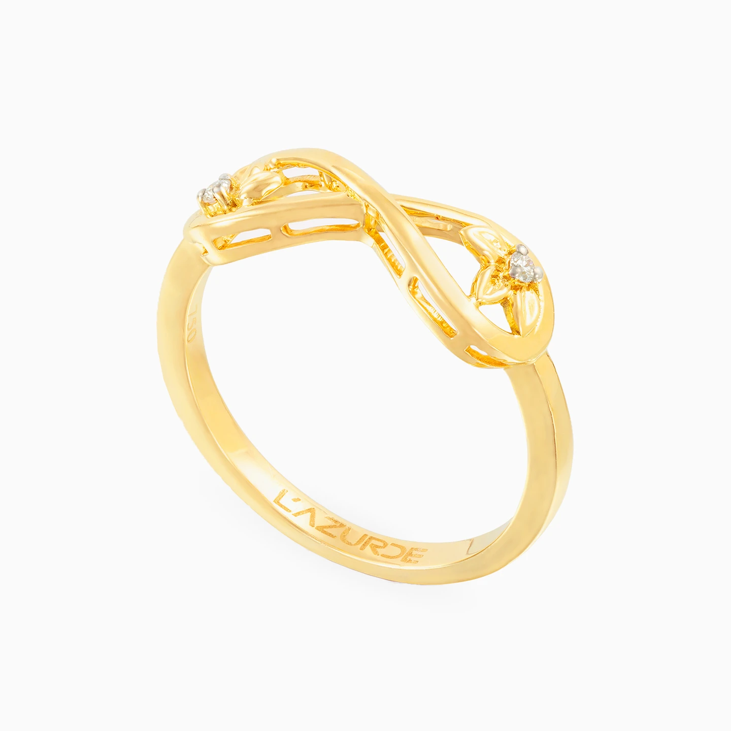 Combining elegant sparkle with feminine curves, this gorgeous ring from L'azurde Diamonds offers easy everyday glam. Fashioned in 18-karat yellow gold, this mesmerizing ring features brilliant cut diamond flowers that sparkle within an infinity loop. Pair this magnificent accessory with the matching pendant necklace and earrings for the perfect finishing touch to any outfit.