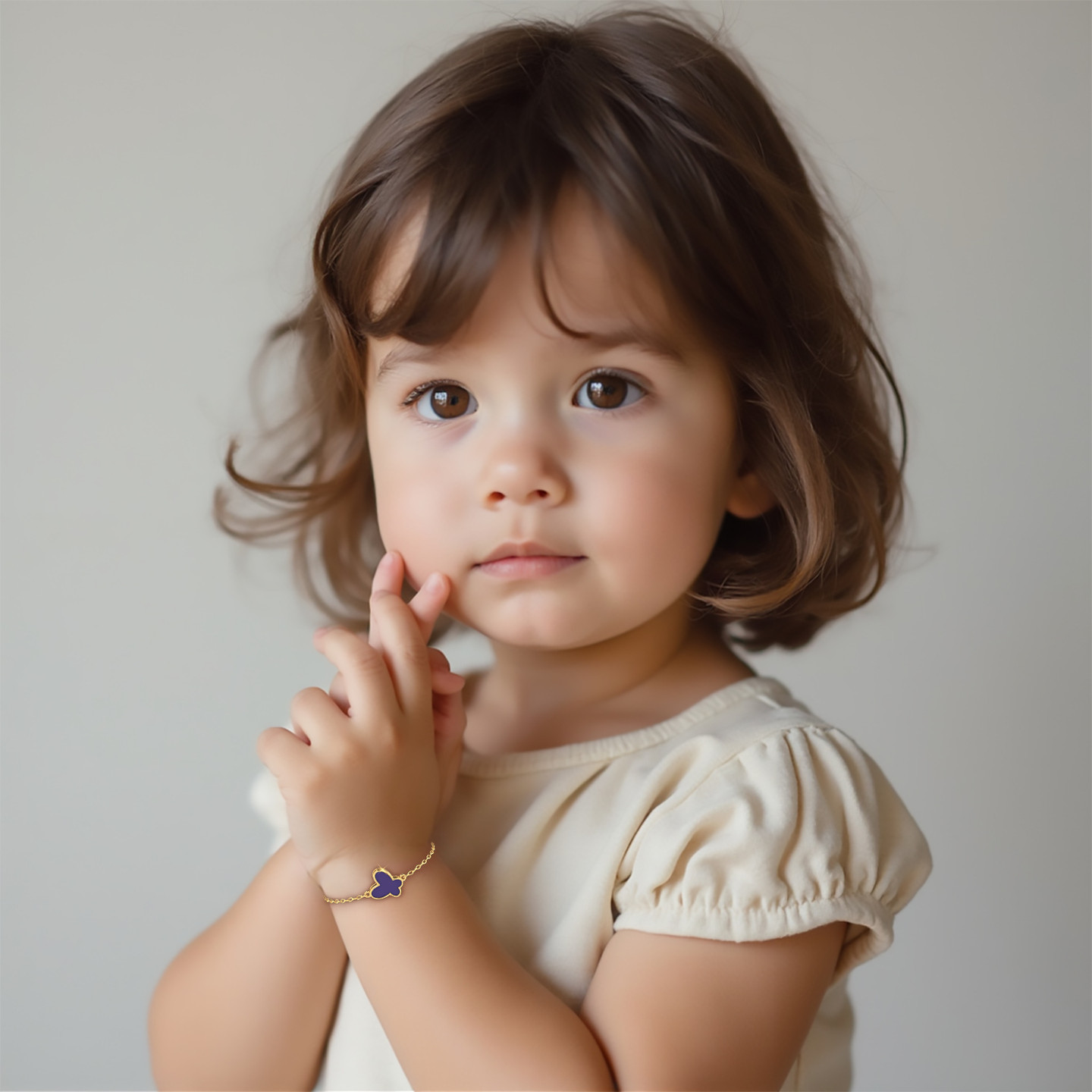 Add a touch of charm to your little one’s look with Miss L's Kids Collection, featuring a delightful 18k yellow gold chain bracelet. This enchanting piece showcases a butterfly-shaped pendant, elegantly coated with vibrant enamel colors that celebrate youthful joy and playfulness. Designed to combine elegance and fun, this bracelet is a perfect accessory for any occasion, making childhood moments even more special.
